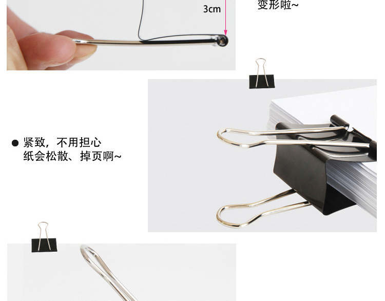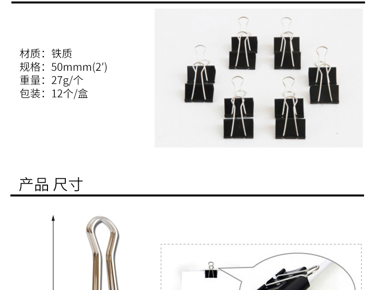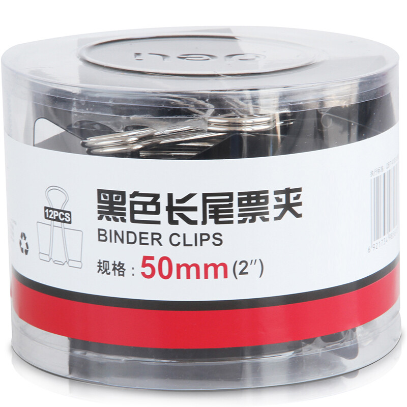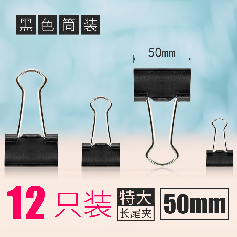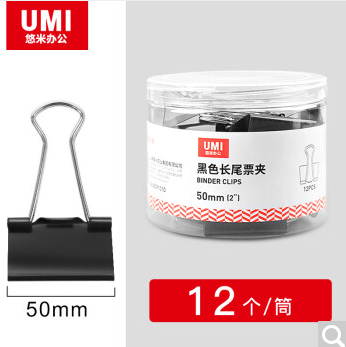 悠米长尾夹 燕尾夹50mm 12个筒 黑色