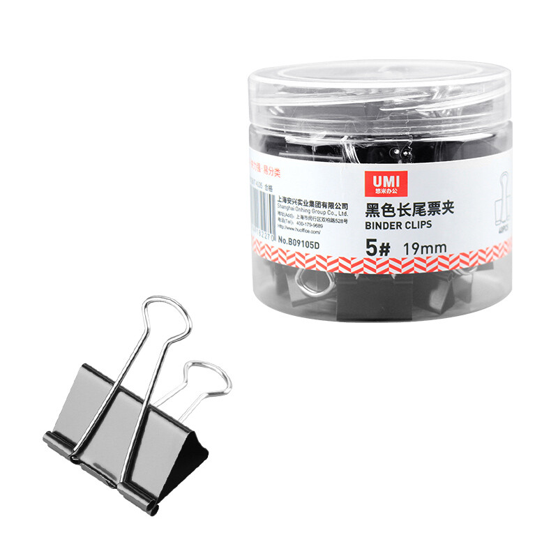 悠米 长尾夹B09105D(19mm)黑色 40个/筒