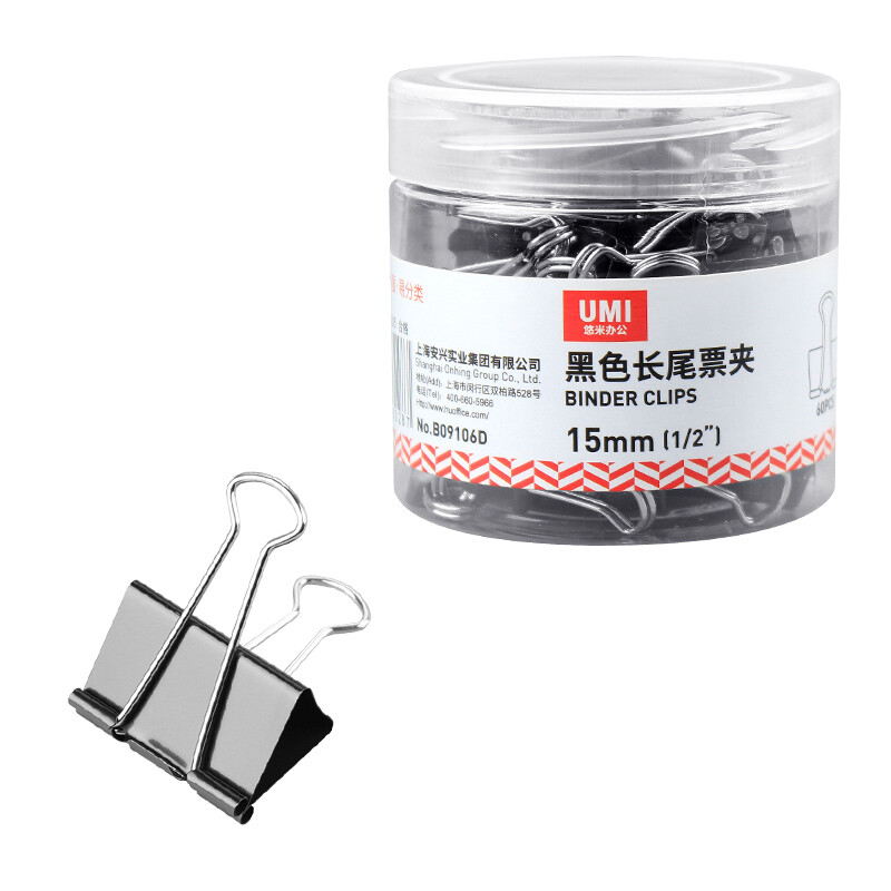 悠米 长尾夹B09106D(15mm)黑色 60个/筒