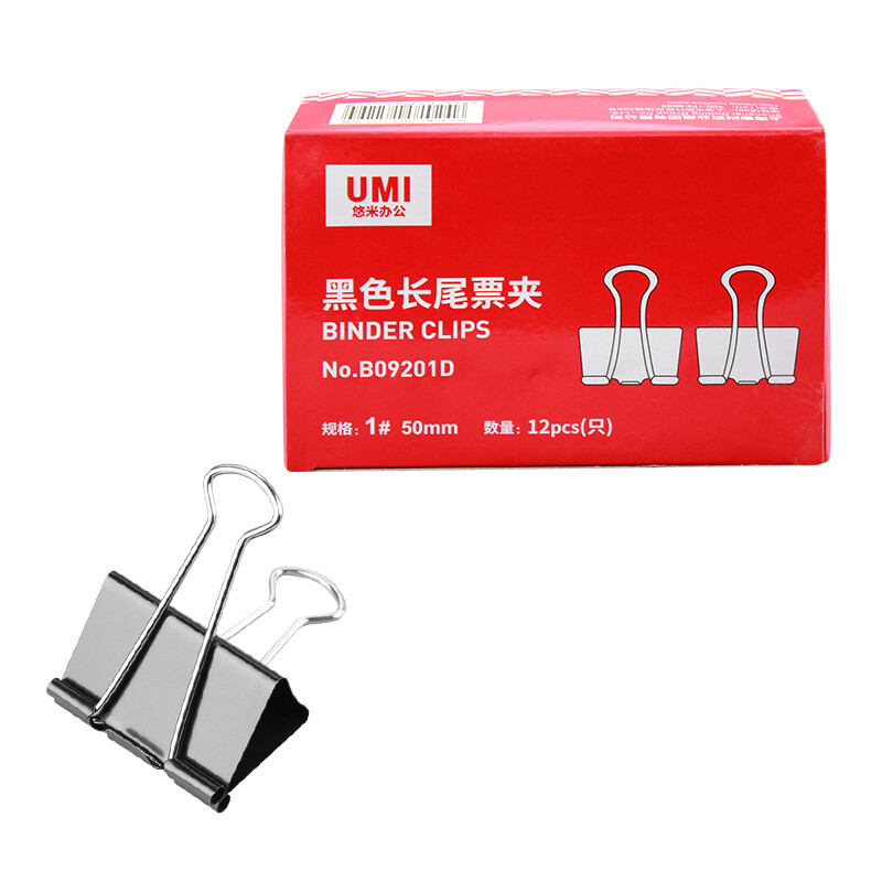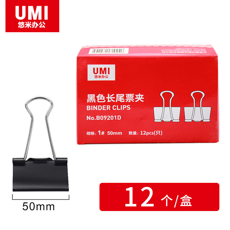 悠米 黑色长尾夹B09201D (50mm)黑色 12只/盒