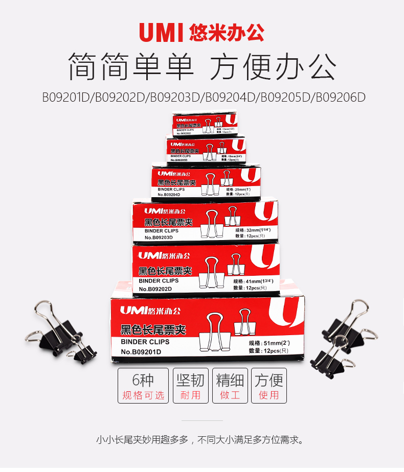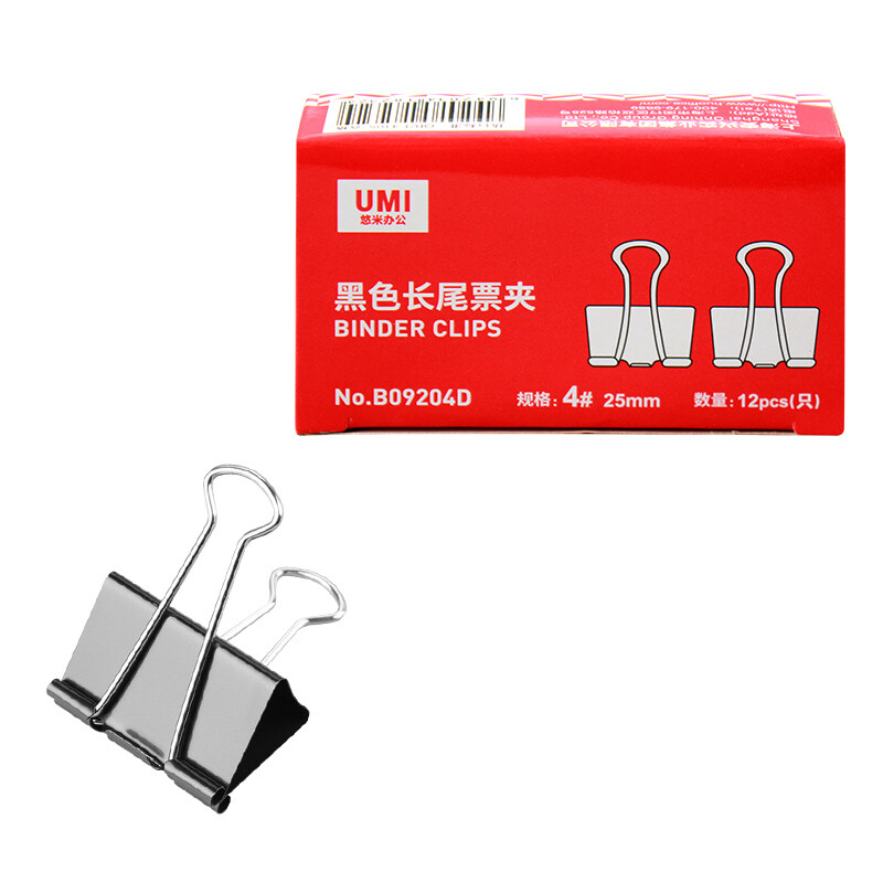 悠米 长尾夹B09204D(25mm)黑色 12只/盒