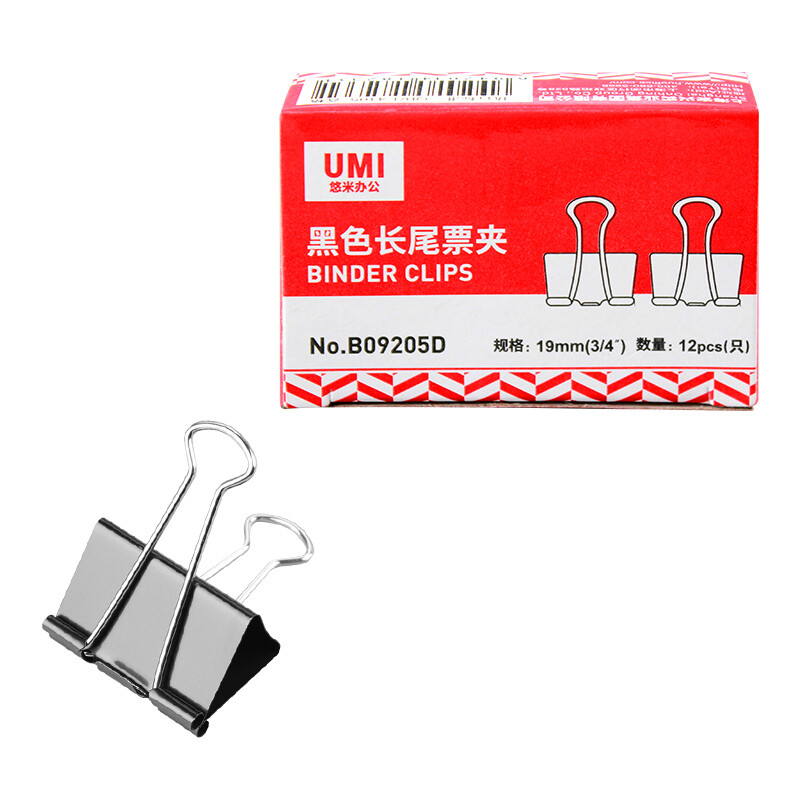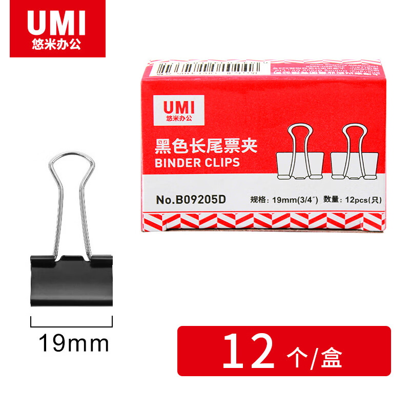悠米 长尾夹B09205D(19mm)黑色 12只/盒