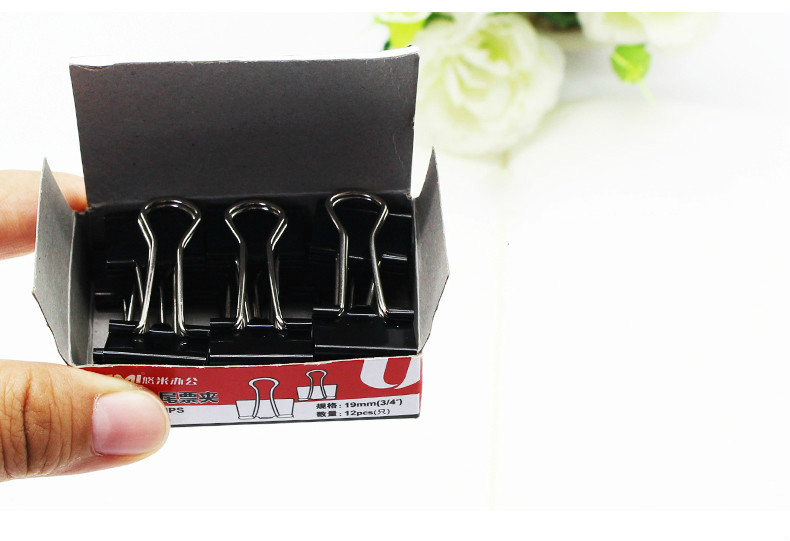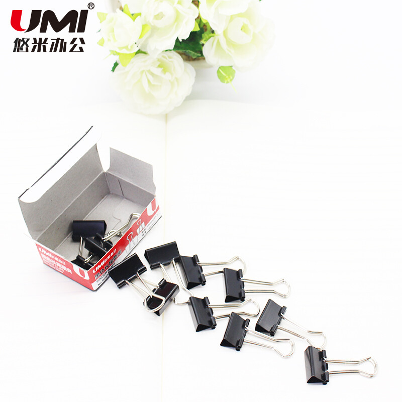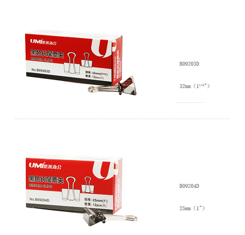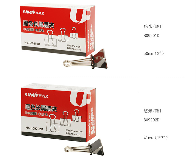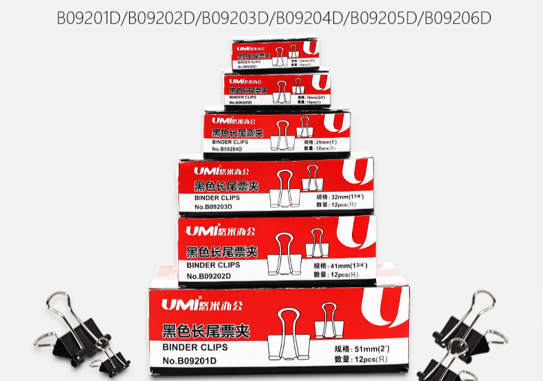 悠米 长尾夹B09206D(15mm)黑色12只/盒