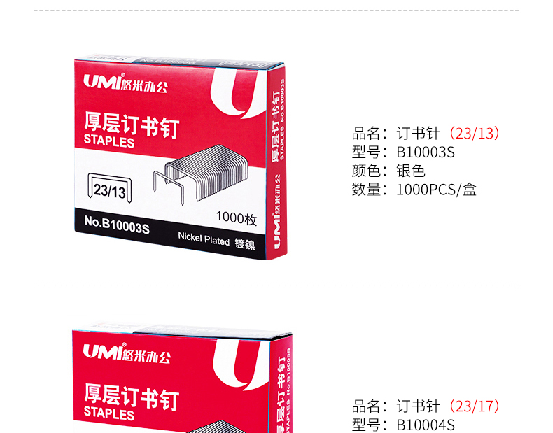 悠米 厚层订书针B10003S大号 23/13 13号(订80张)