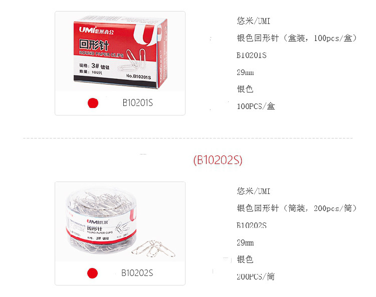 悠米 银色回形针(100pcs/盒)B10201S银 单盒