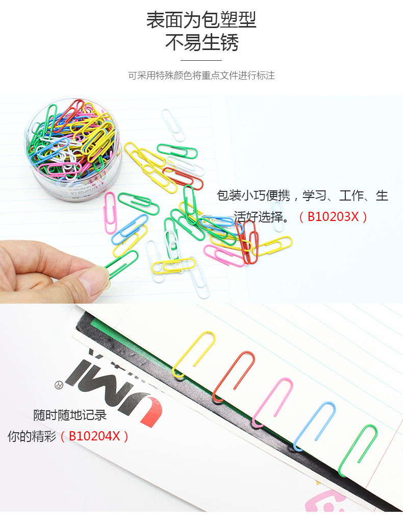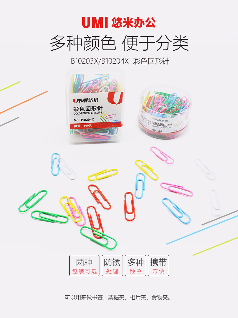 悠米(UMI)彩色回形针(筒装,160pcs/筒) B10203X