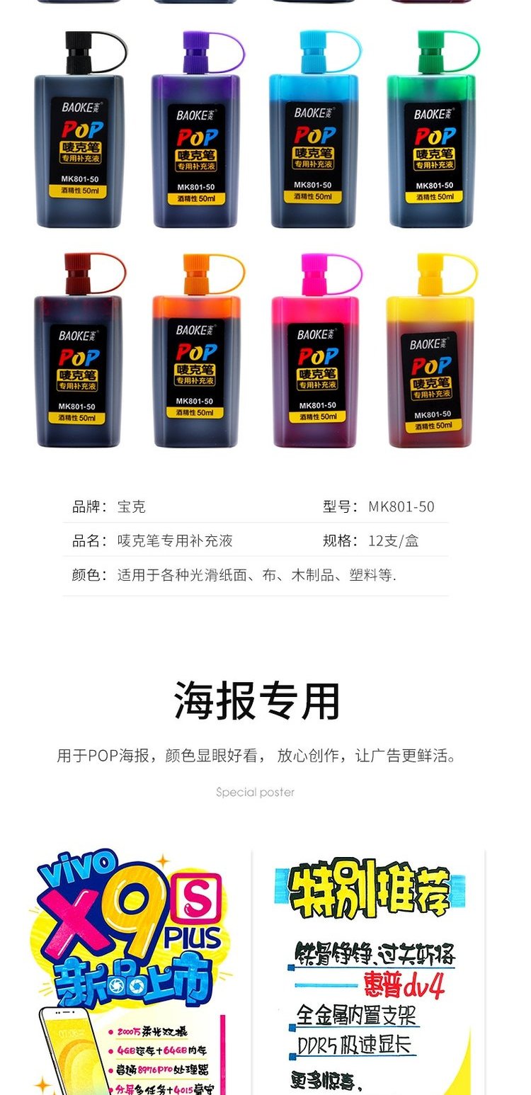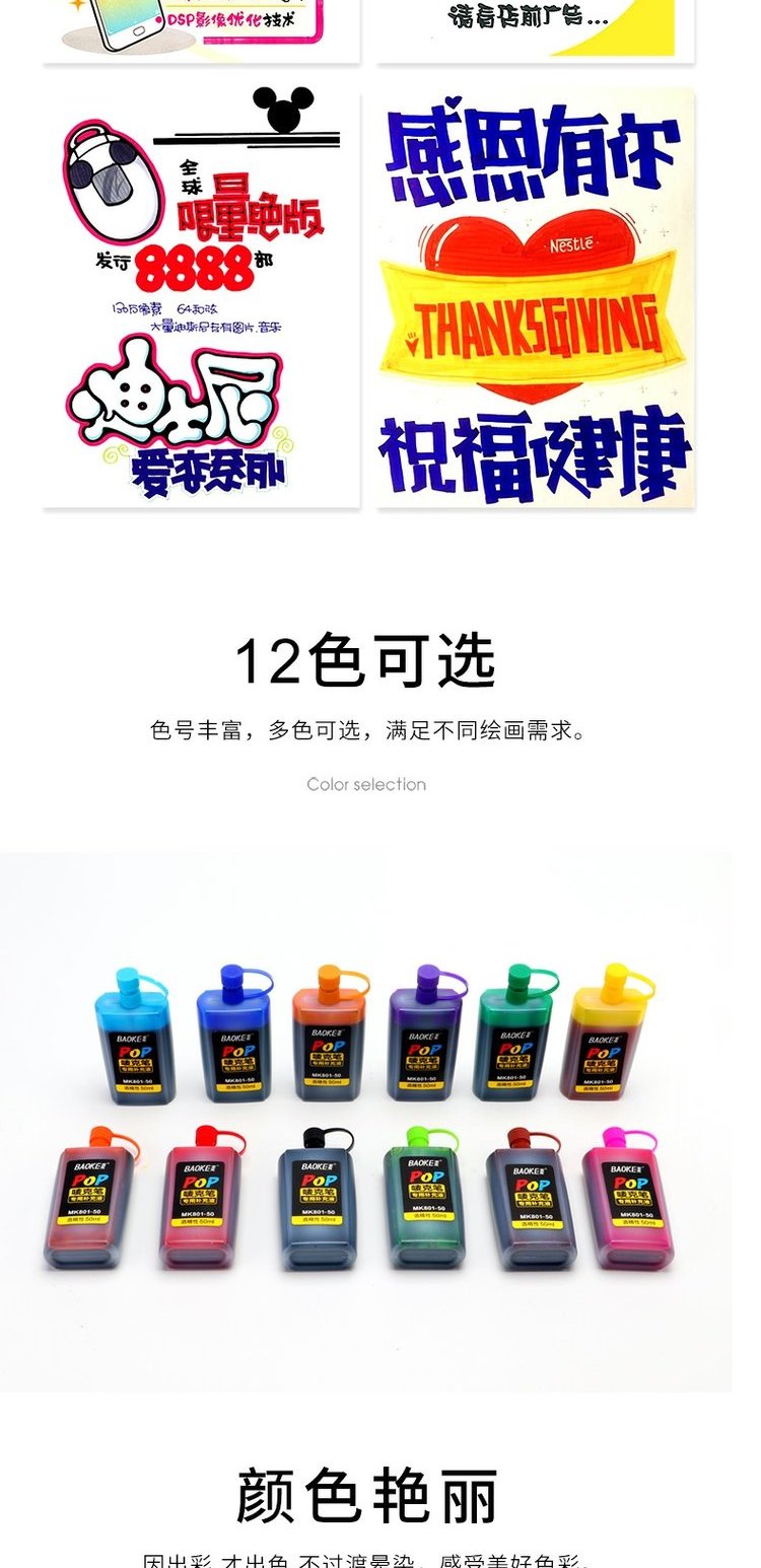 宝克POP笔大容量50ML墨水马克笔补充液 MK-801-50 粉色