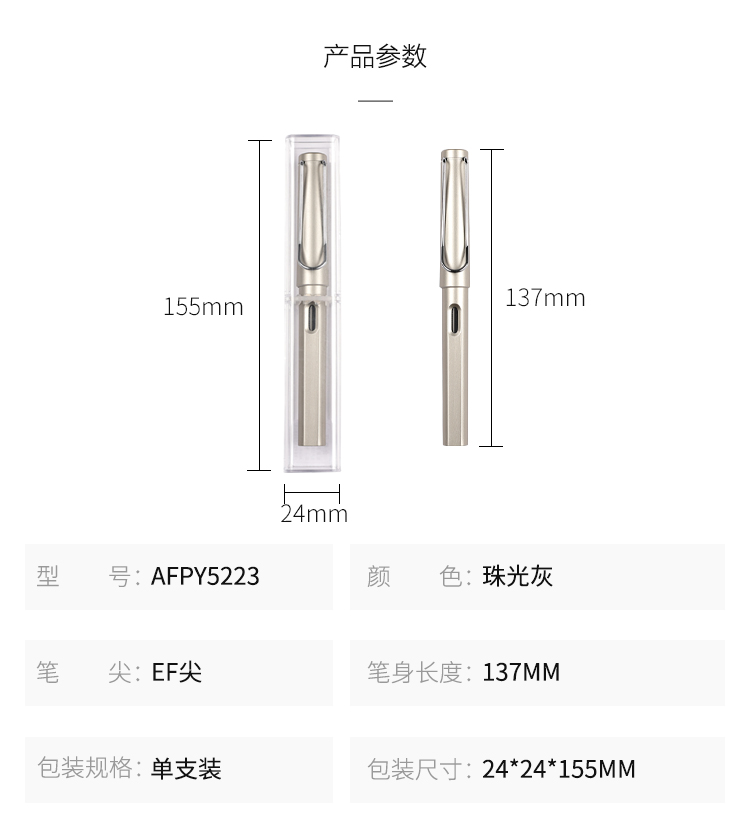 晨光(M&G)文具学生钢笔珠光灰EF尖可换墨囊 正姿练字钢笔 办公签字笔墨水笔 单支装 开学礼物AFPY522317