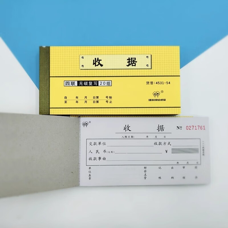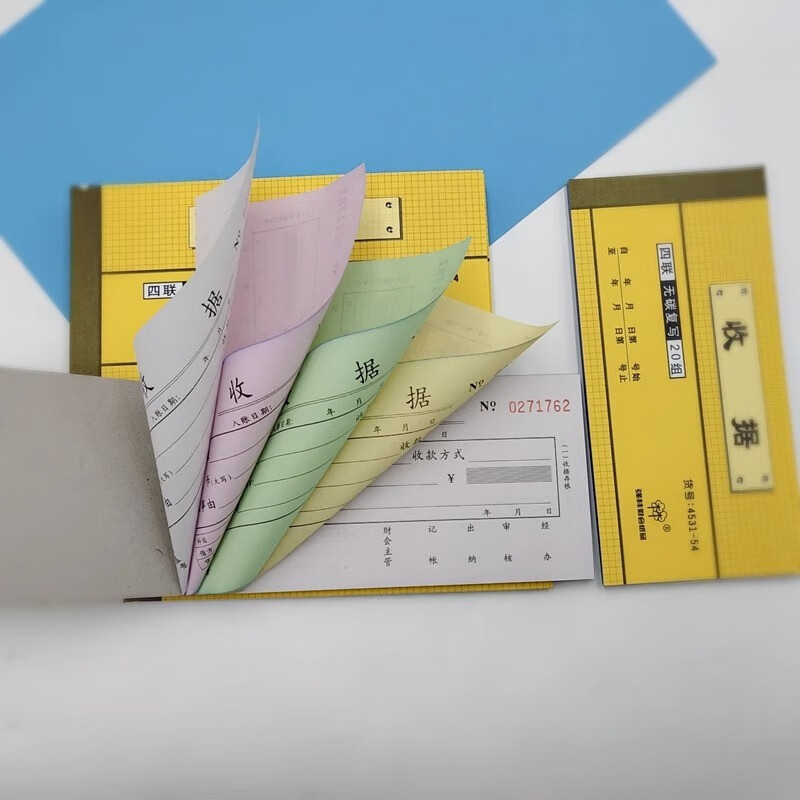 强林 54开四联收据 无碳复写四联收款收据( 封面颜色随机10本/包) 4531-54