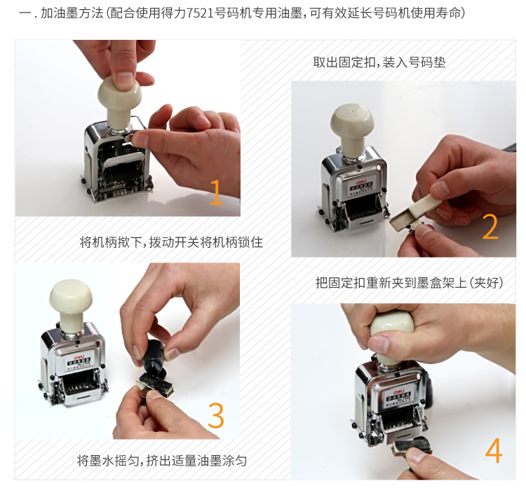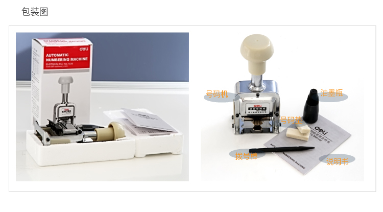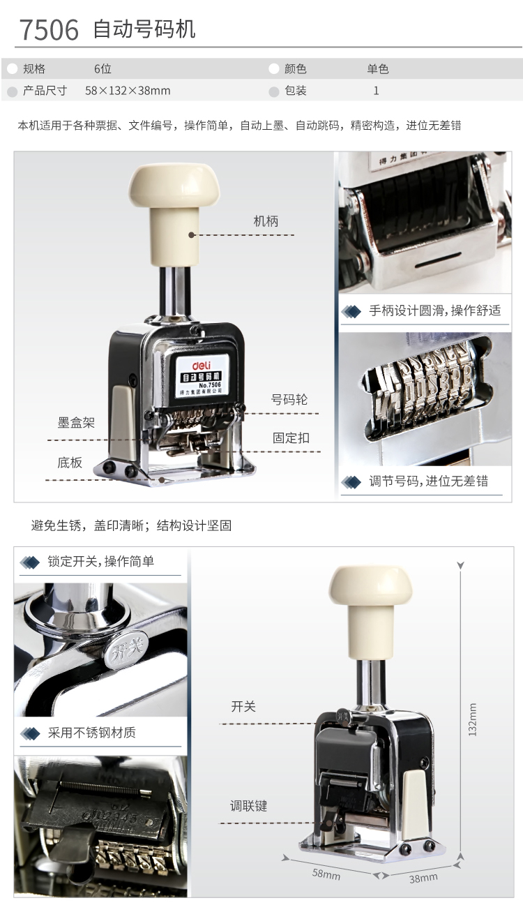 得力(deli)6位财务办公自动号码机/打码机 盖印清晰 财务用品 办公用品 7506
