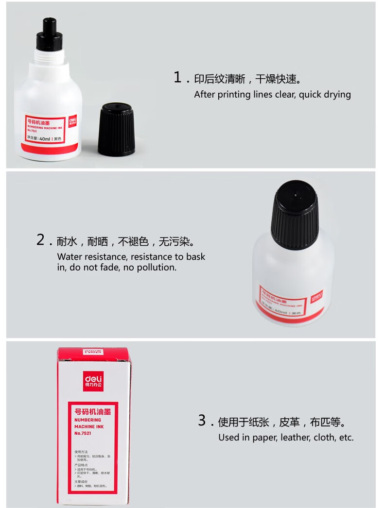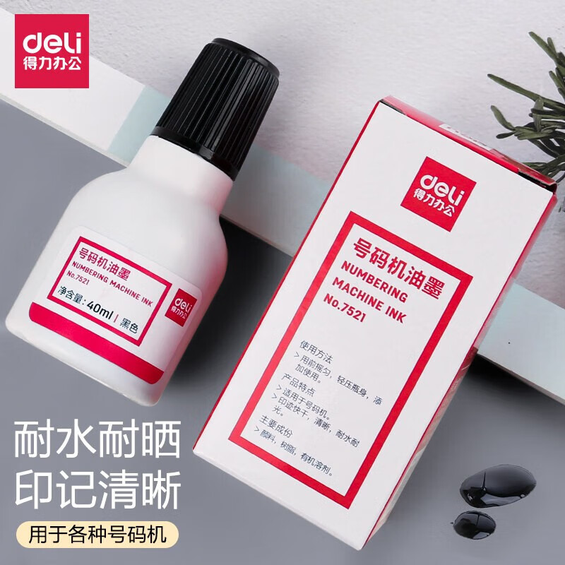 得力(deli) 自动号码机 打码机编号打号器页码机日期可调数字印章 黑色油墨3瓶/组 -7521