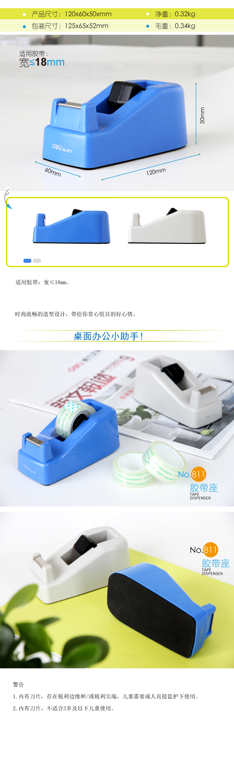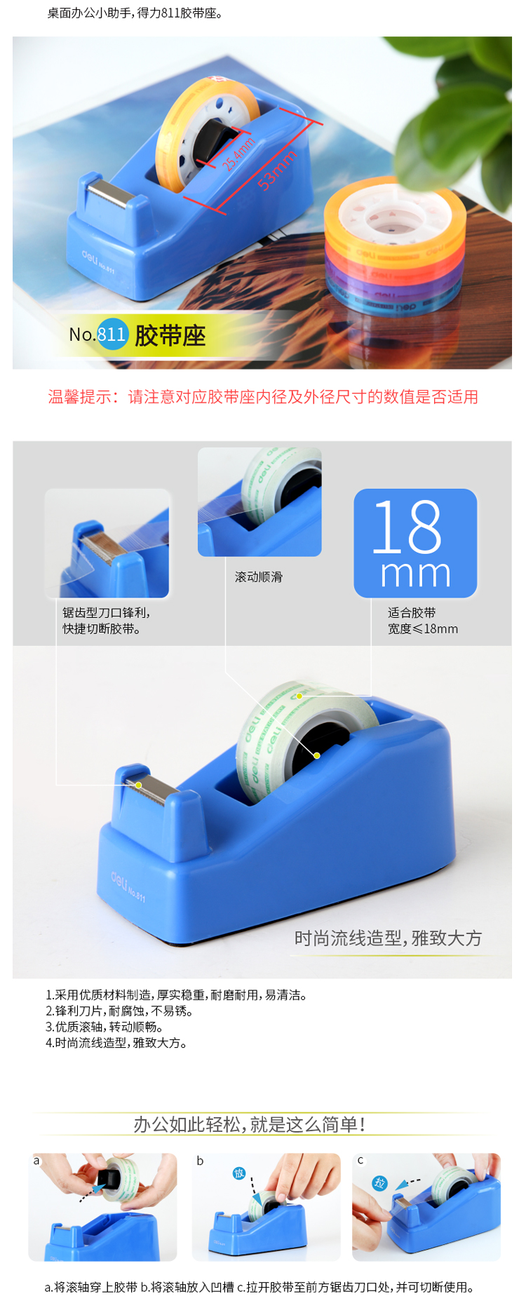 得力(deli) 小号胶带座 适用于12-18mm) 蓝灰随机811