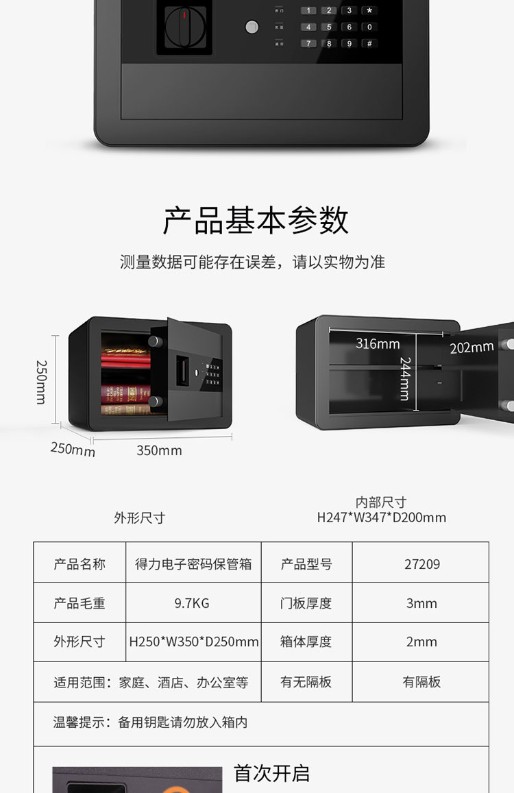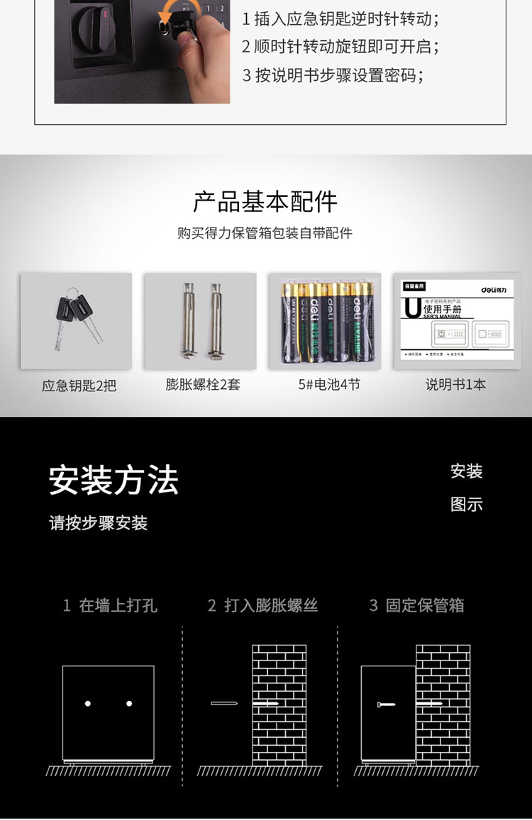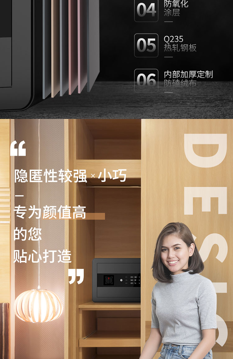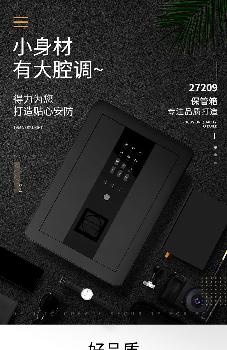 得力保险柜 办公家用电子密码保管箱小型入墙入柜私密箱隐藏保密柜 可固定安装 纯平面板不突兀 25cm磨砂黑