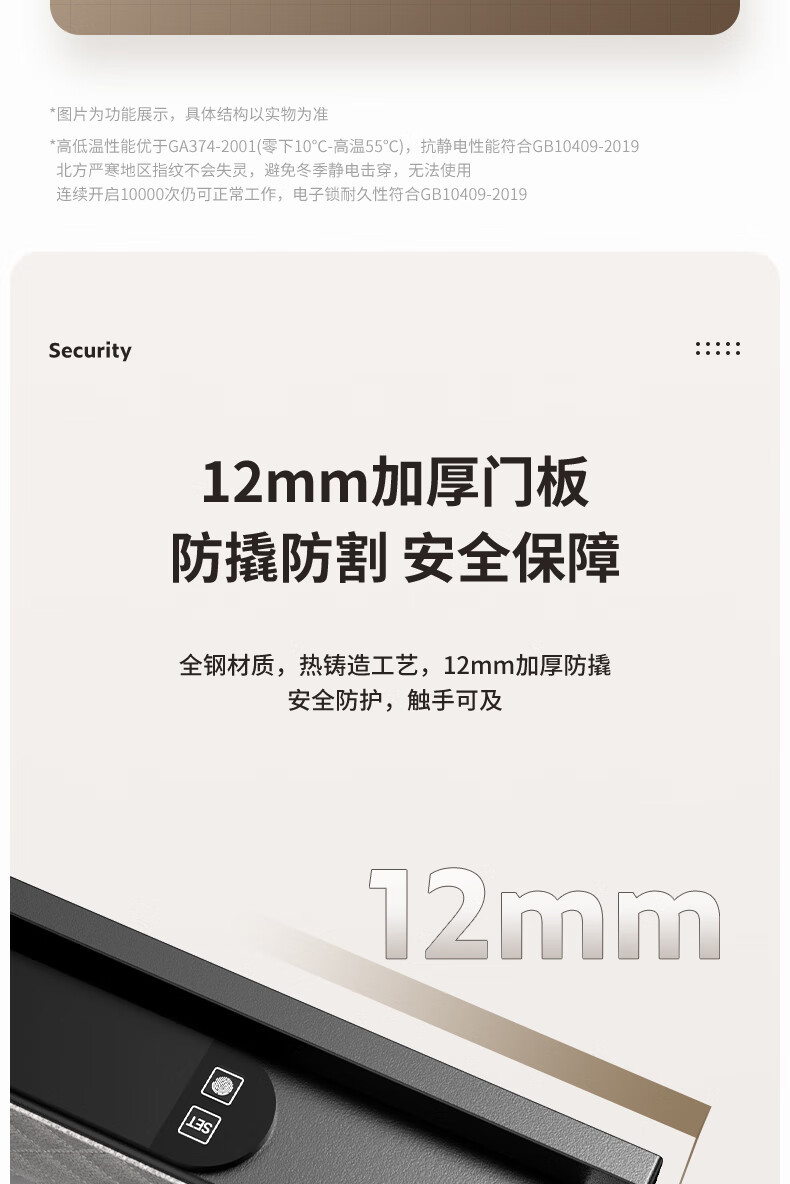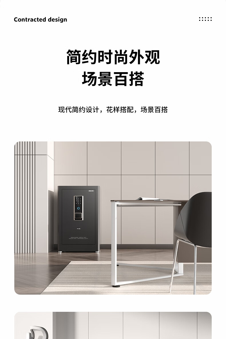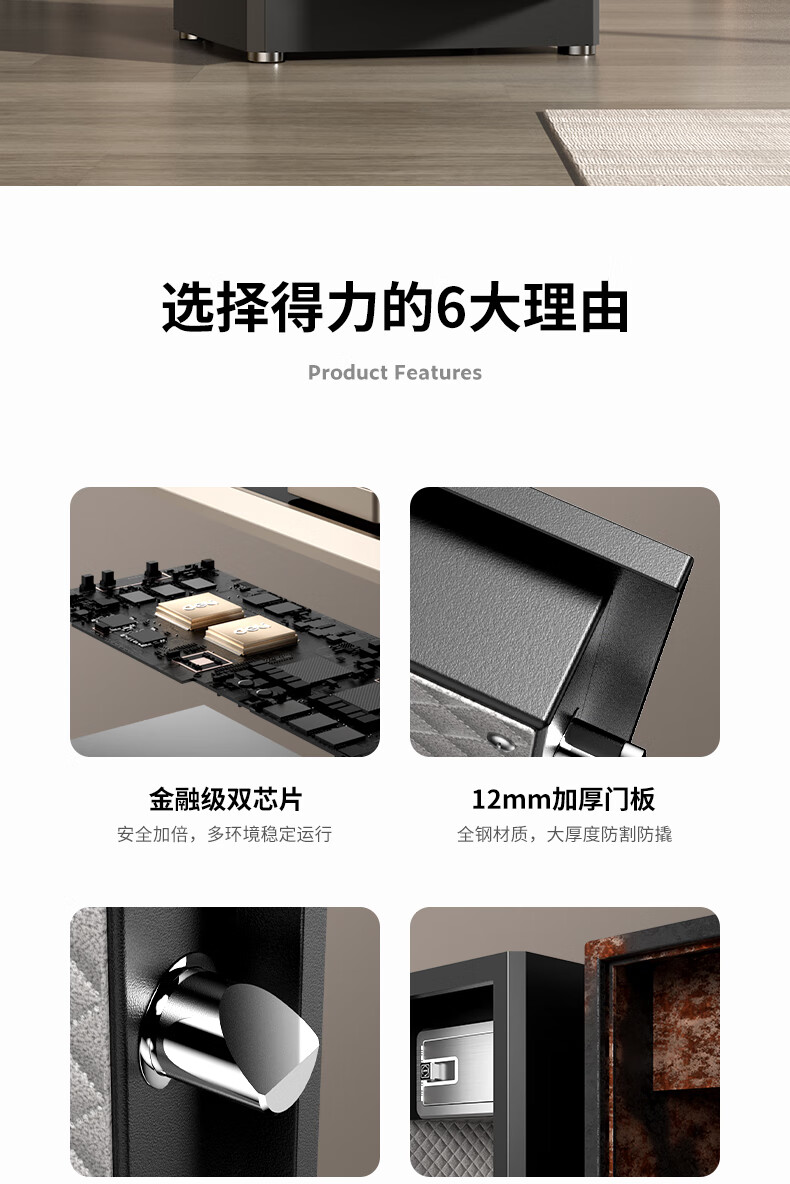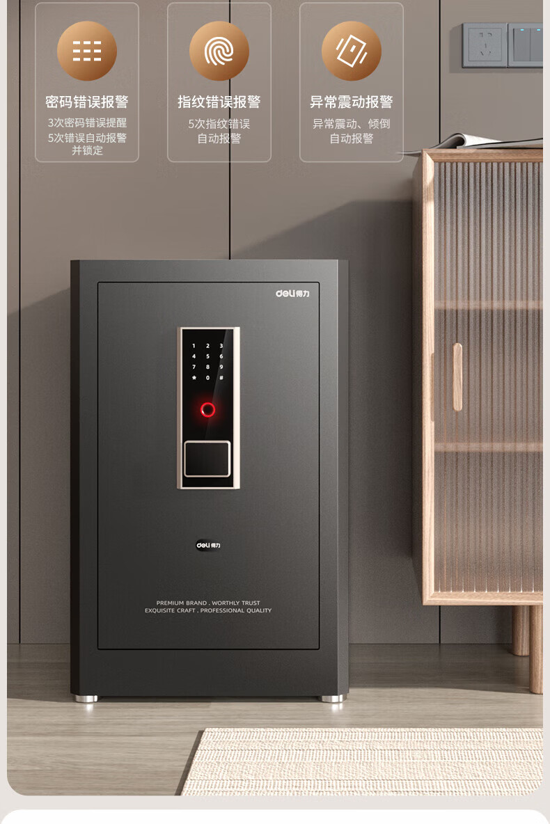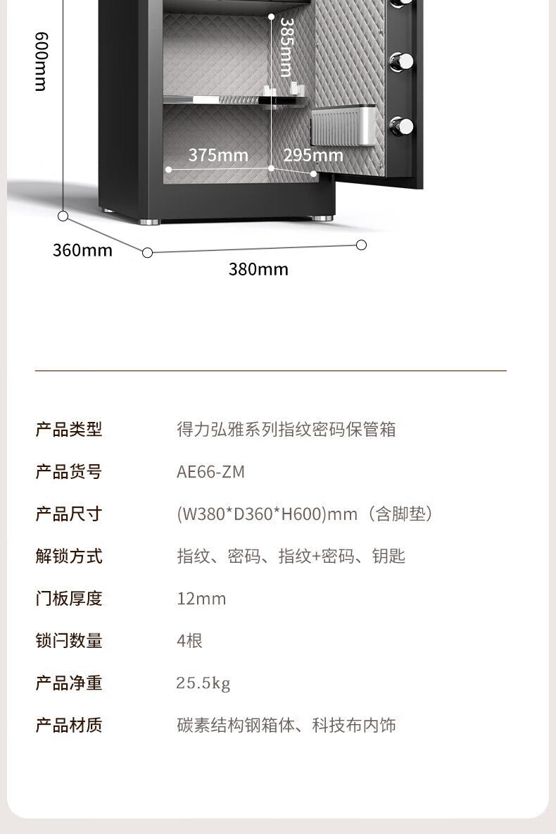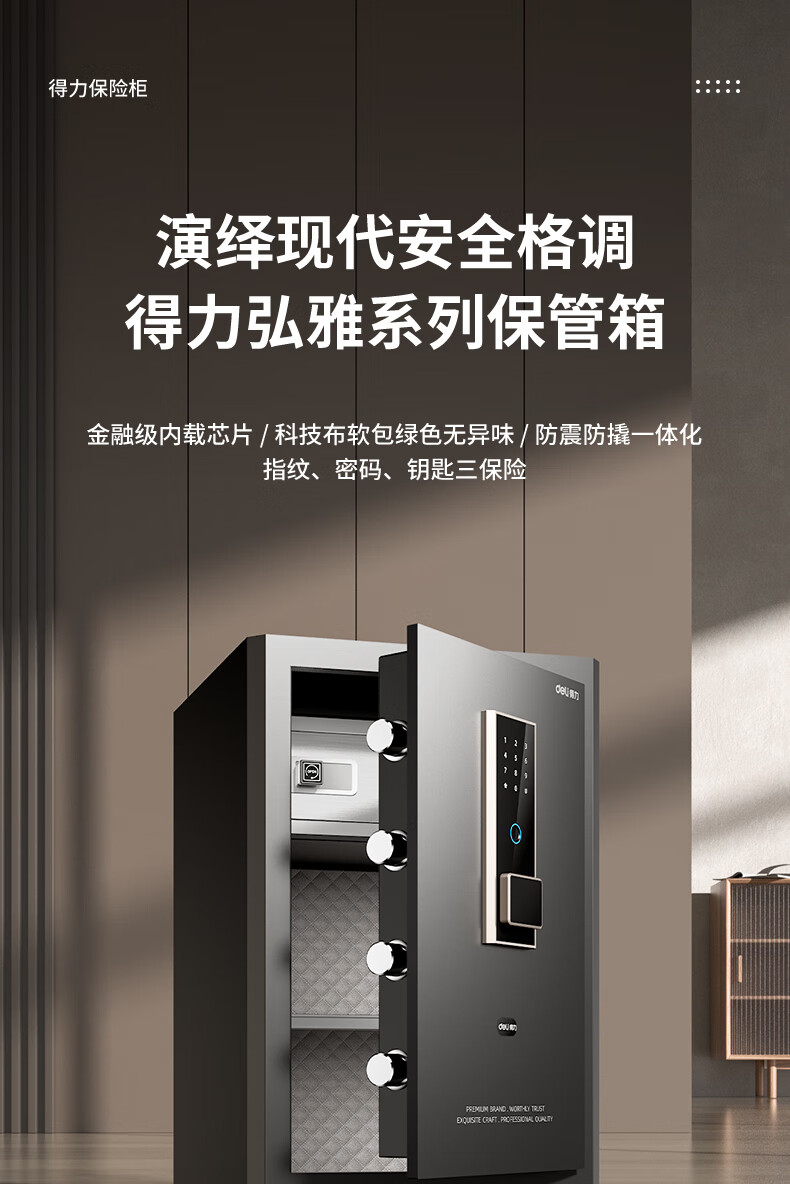 得力指纹密码保险箱小型全钢防盗可入墙入柜保险箱60cm曜岩黑弘雅系列