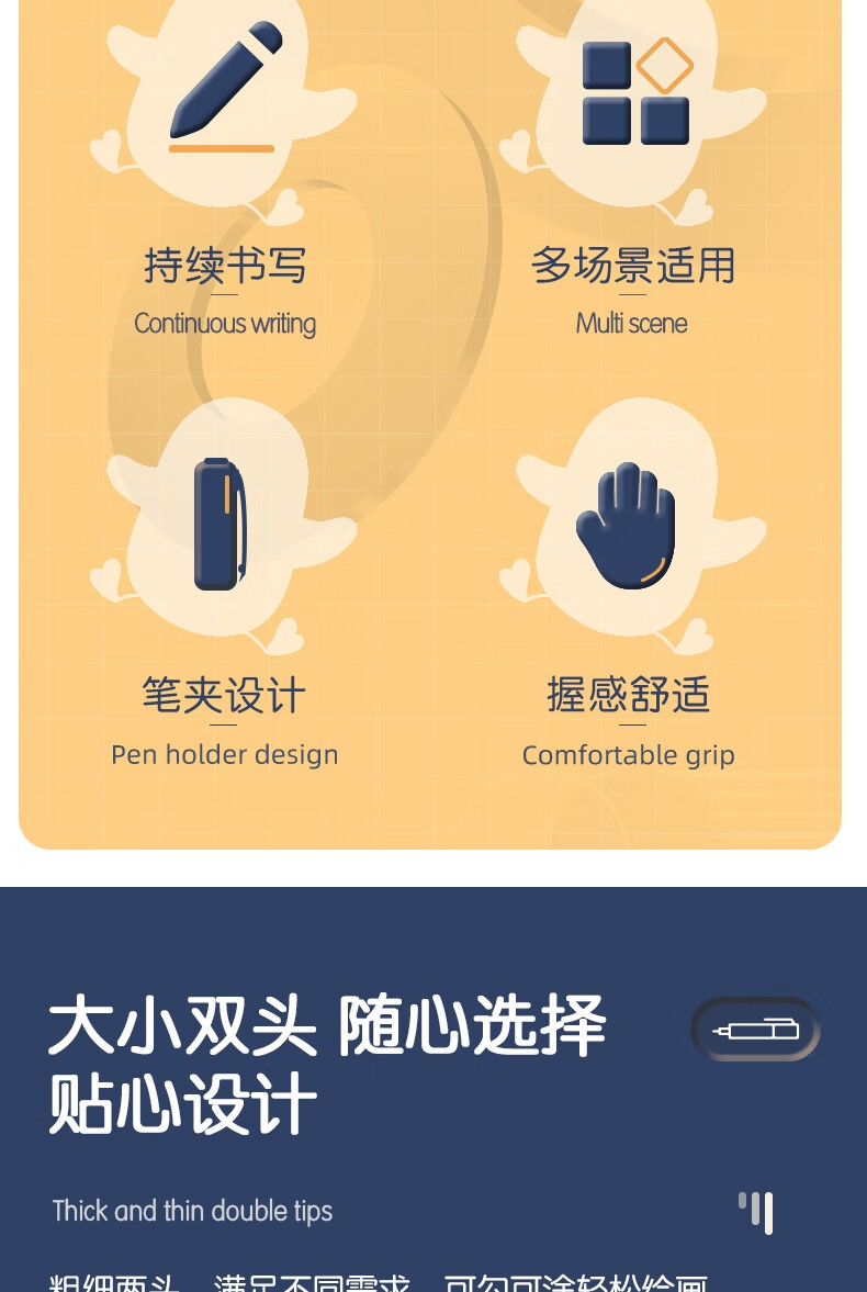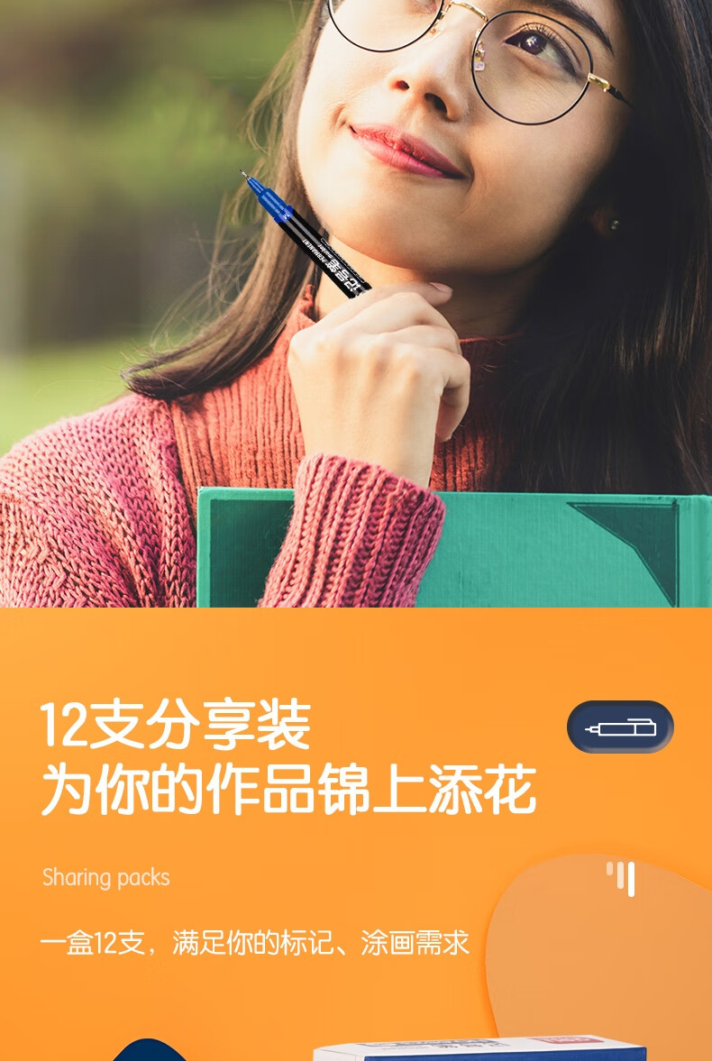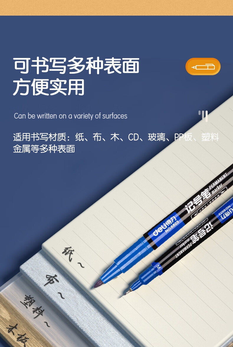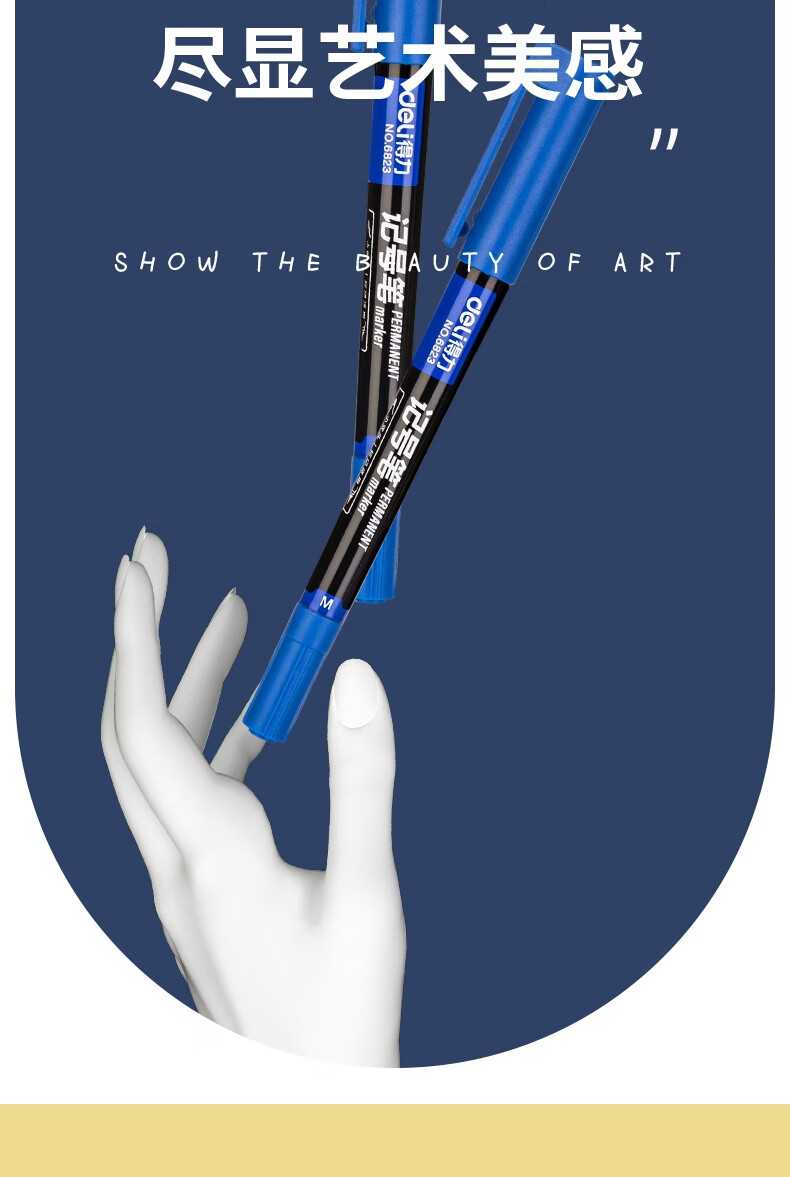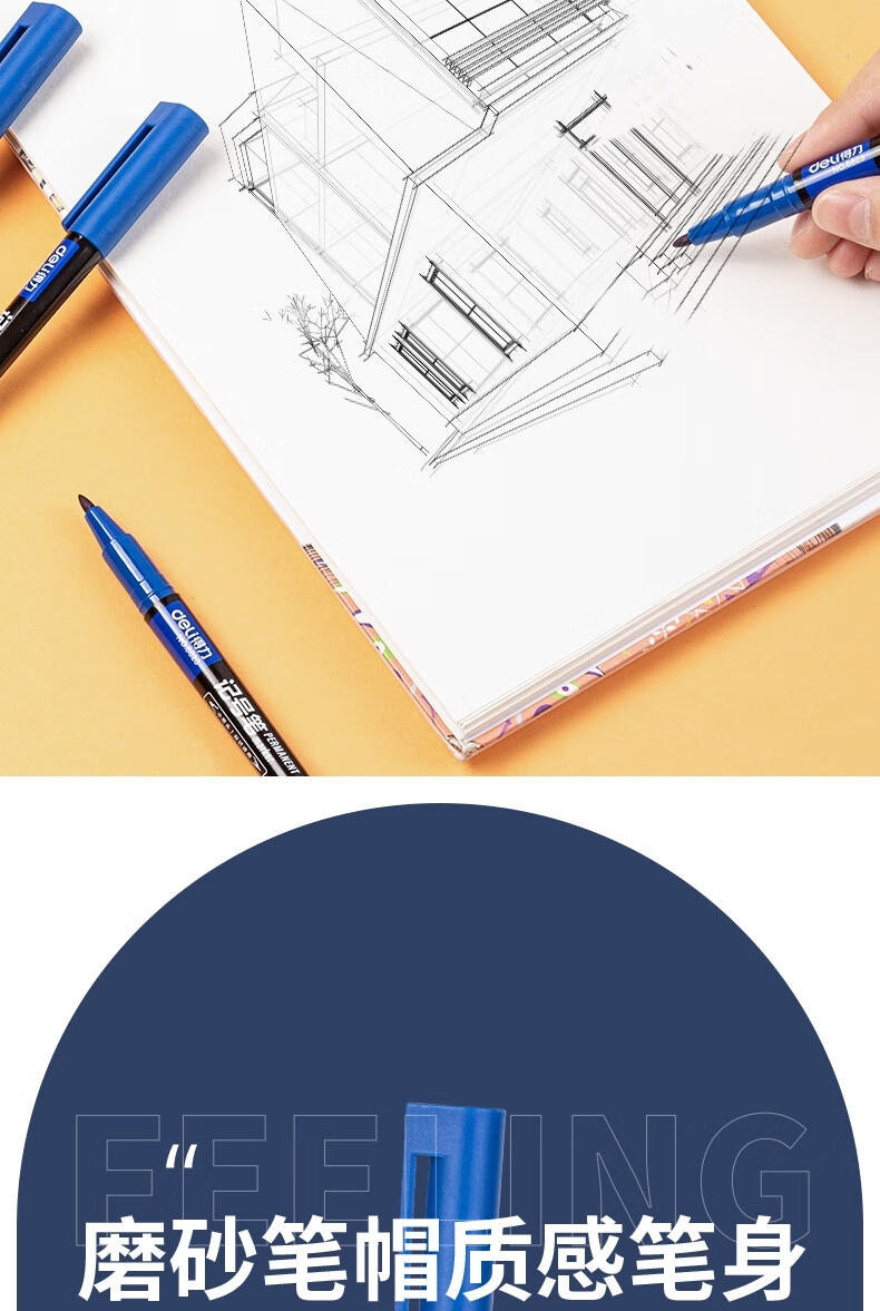 得力(deli) 小双头多用记号笔签字笔 勾线笔会议笔马克笔 双头勾线笔儿童学生 12支/盒 蓝色 6823