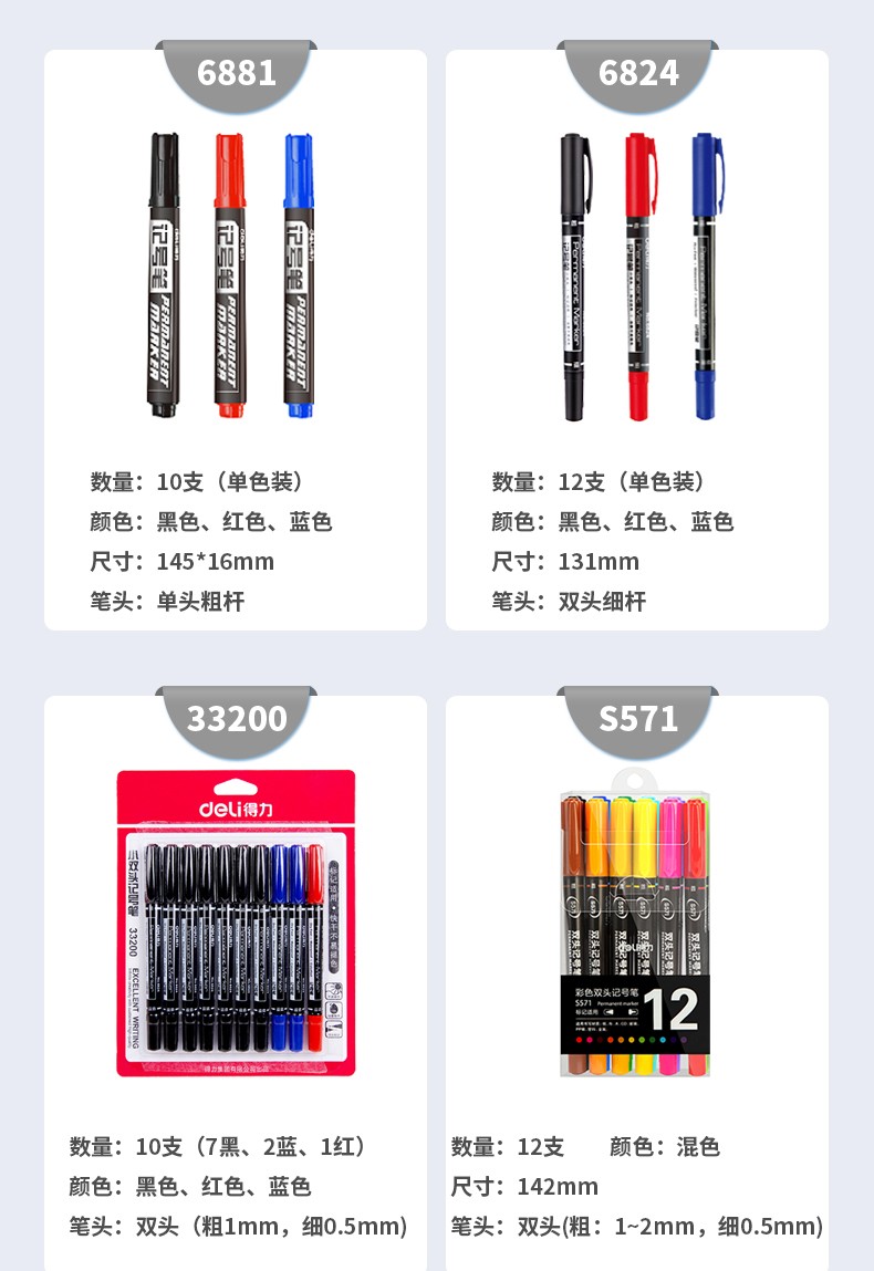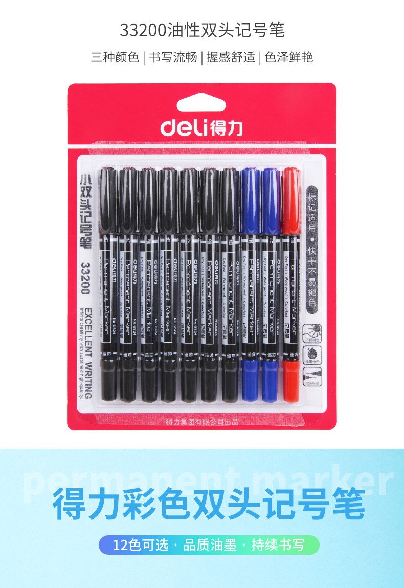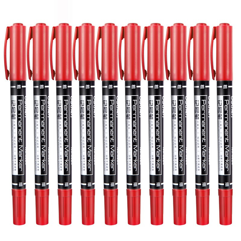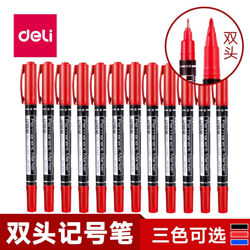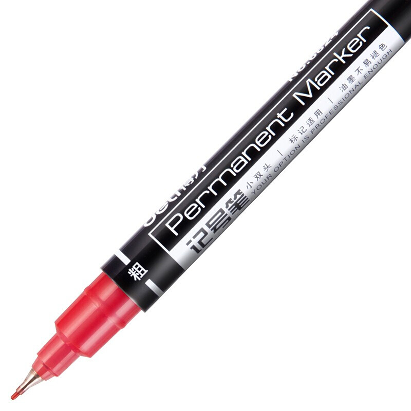 得力小双头油性记号笔6824 红色