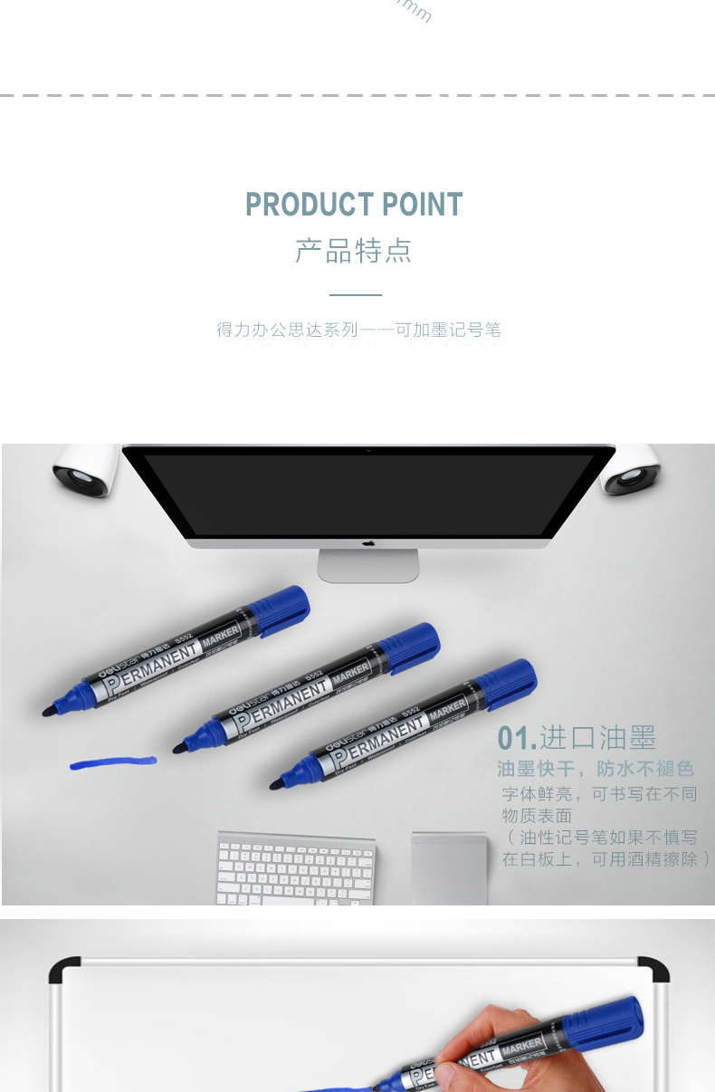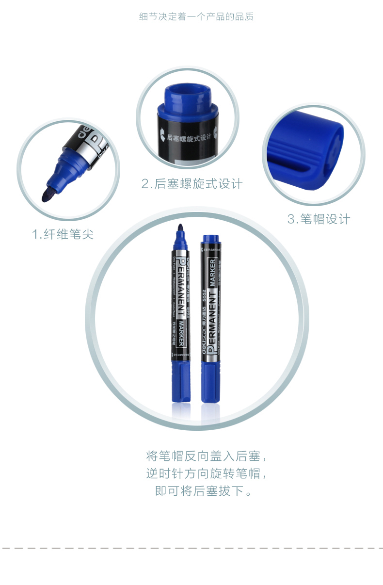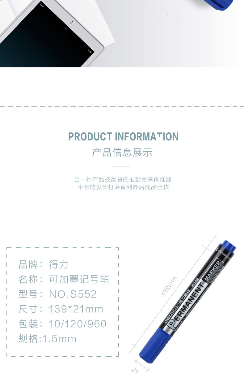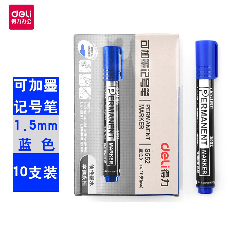 得力(deli)记号笔 s552 蓝色 可加墨油性笔 不可擦