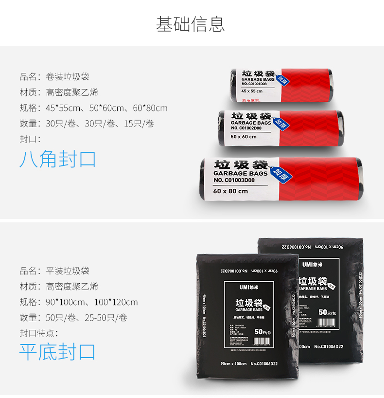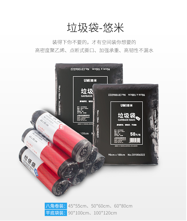安兴 悠米C01113D10增厚平口垃圾袋(全新料)60*80