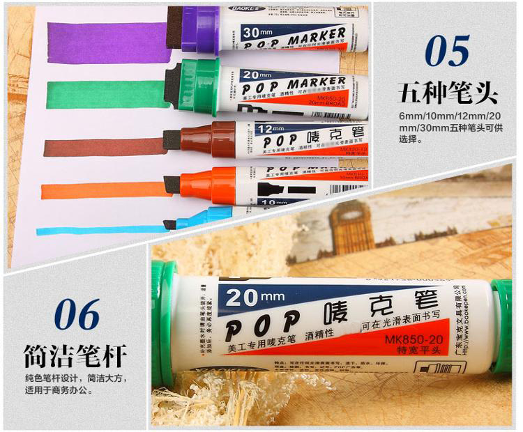 有5种笔头套装可供选择(6mm、10mm、12mm、20mm、30mm)