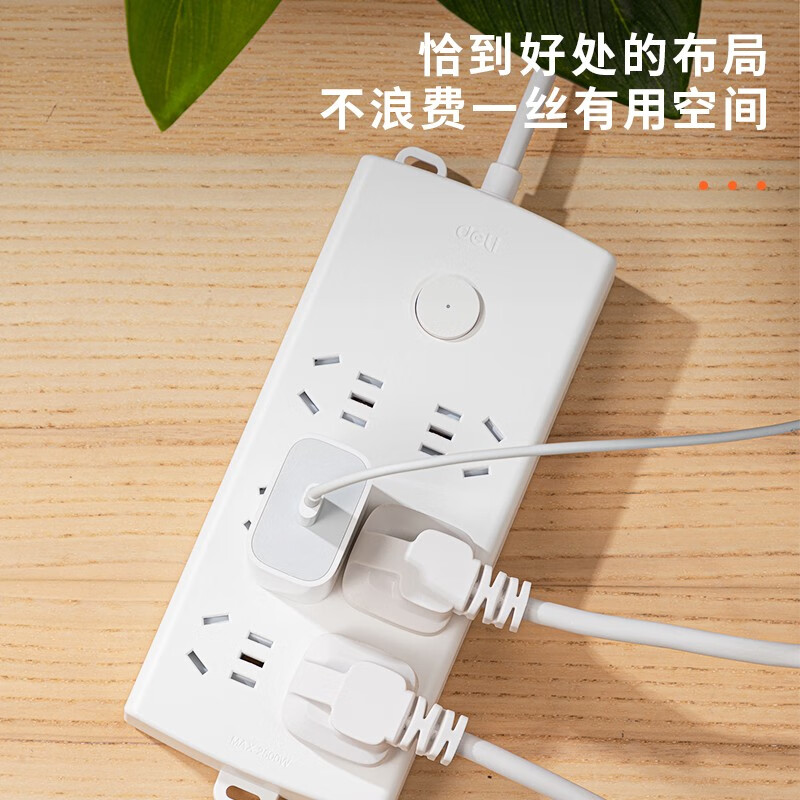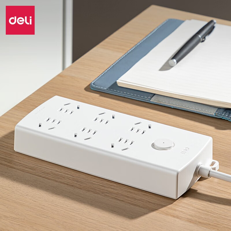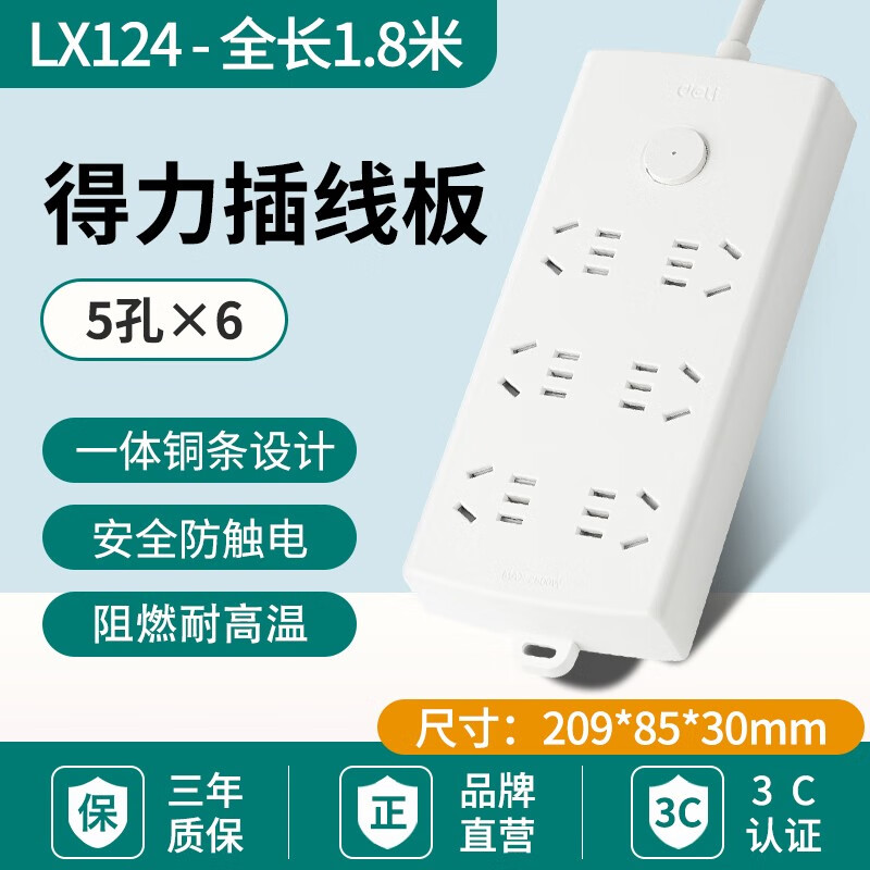 得力(deli)新国标插座 插线板 拖线板 6插位1.8米LX124