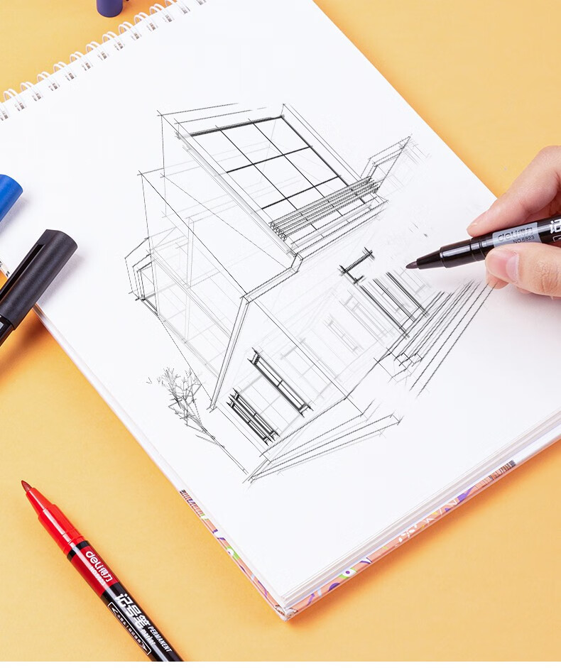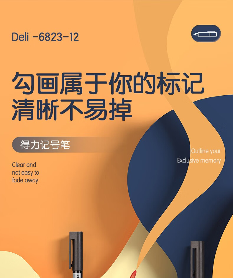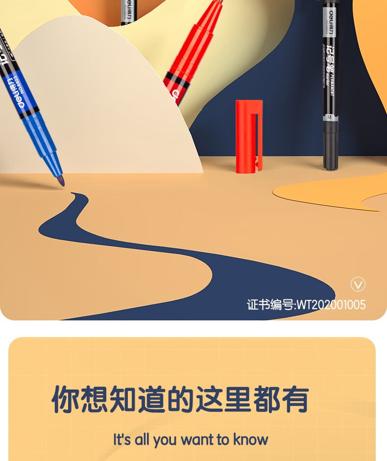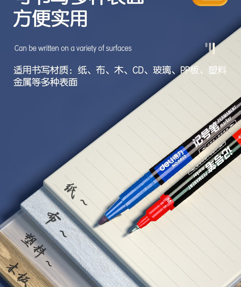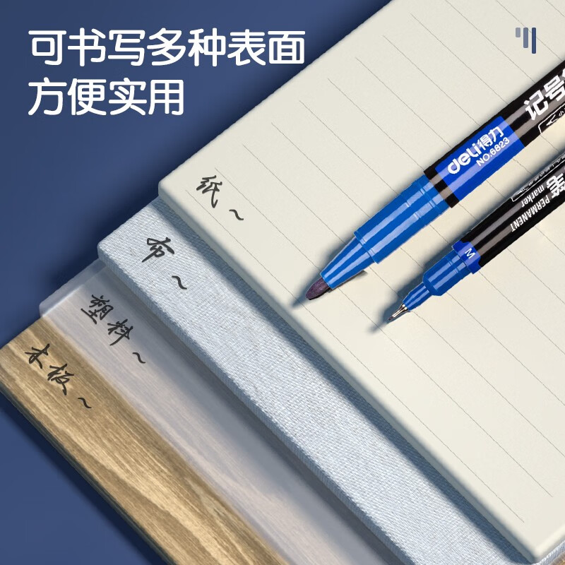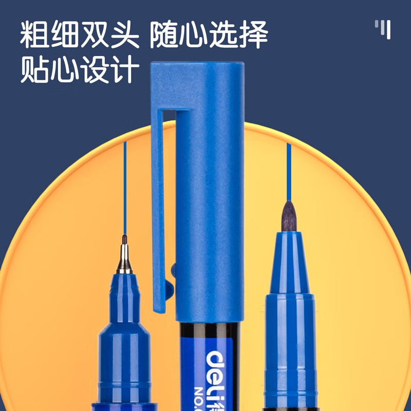 得力(deli)小双头记号笔 蓝色双头双线幅6823