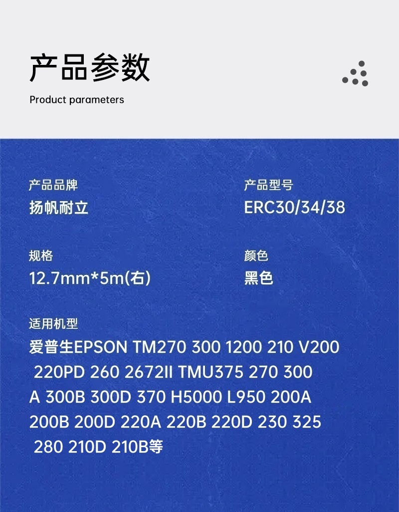 扬帆耐立 ERC30/34/38 色带架 黑色 12.7mm*5m(右)单支装(适用爱普生EPSON TM270 300 1200 210 V200 220PD 260 2672II TMU375 270)