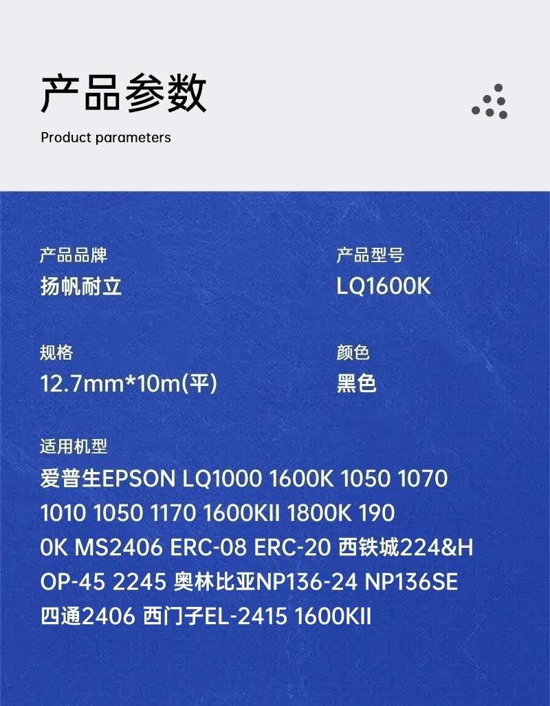 扬帆耐立 LQ1600K 色带架 黑色 12.7mm*10m(平)单支装(适用爱普生EPSON LQ1000 1600K 1050 1070 1010 1050 1170 1600KII 1800K)