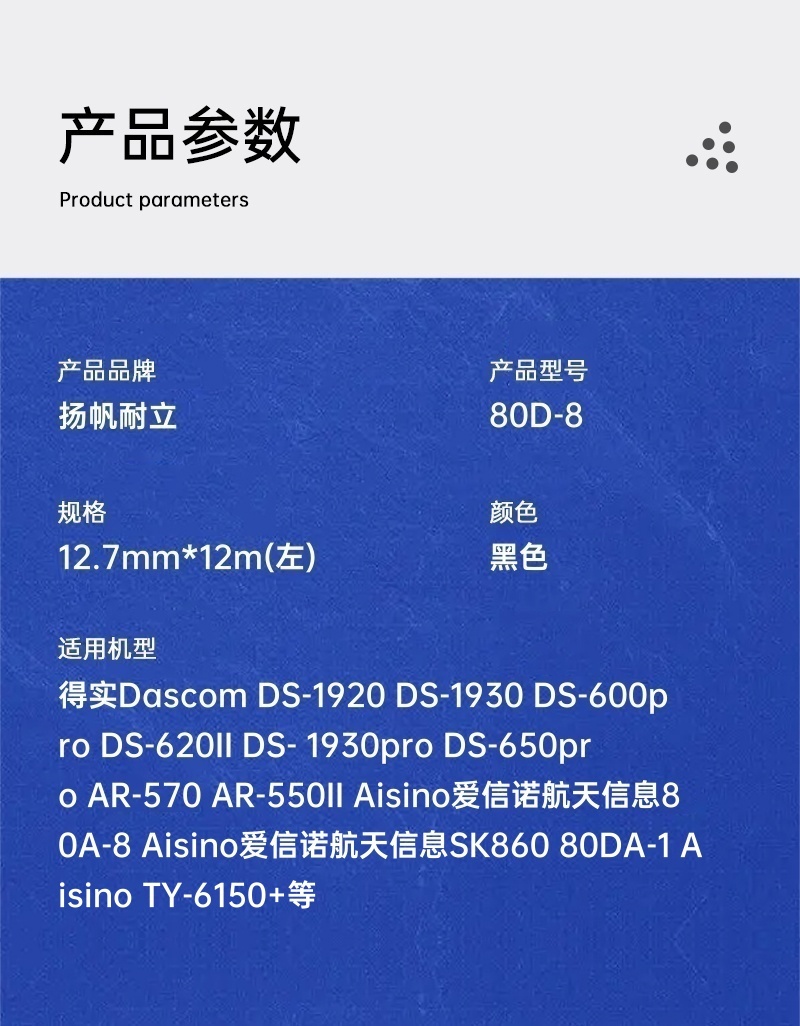 扬帆耐立 80D-8 色带架 黑色 12.7mm*12m(左)单支装(适用得实Dascom DS-1920 DS-1930 DS-600pro DS-620II DS- 1930pro DS-650pro)