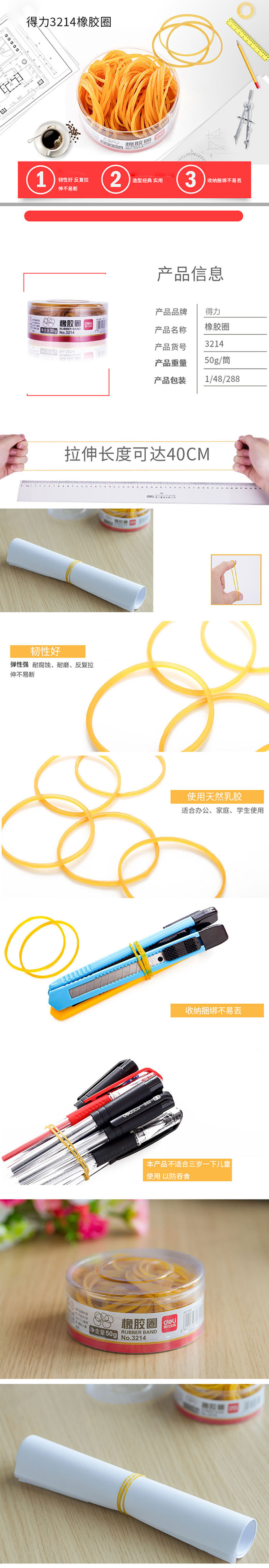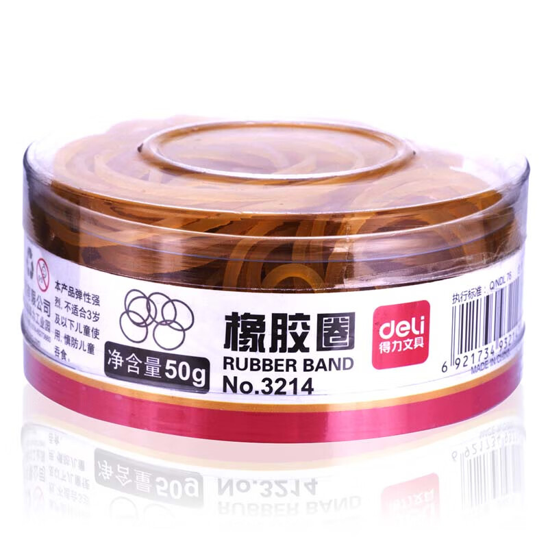 得力(deli)橡皮筋乳胶圈橡皮筋橡胶圈牛皮筋 3214(黄)(50g/筒)3214