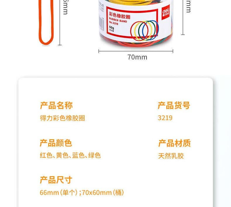 得力(deli) 强力橡皮筋 办公橡皮筋 皮筋 乳胶圈(微黄)(50g/筒)3212