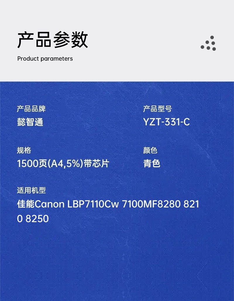 懿智通YZT CN-331青鼓(带芯片)单支装 (适用佳能Canon LBP7110Cw 7100MF8280 8210 8250)
