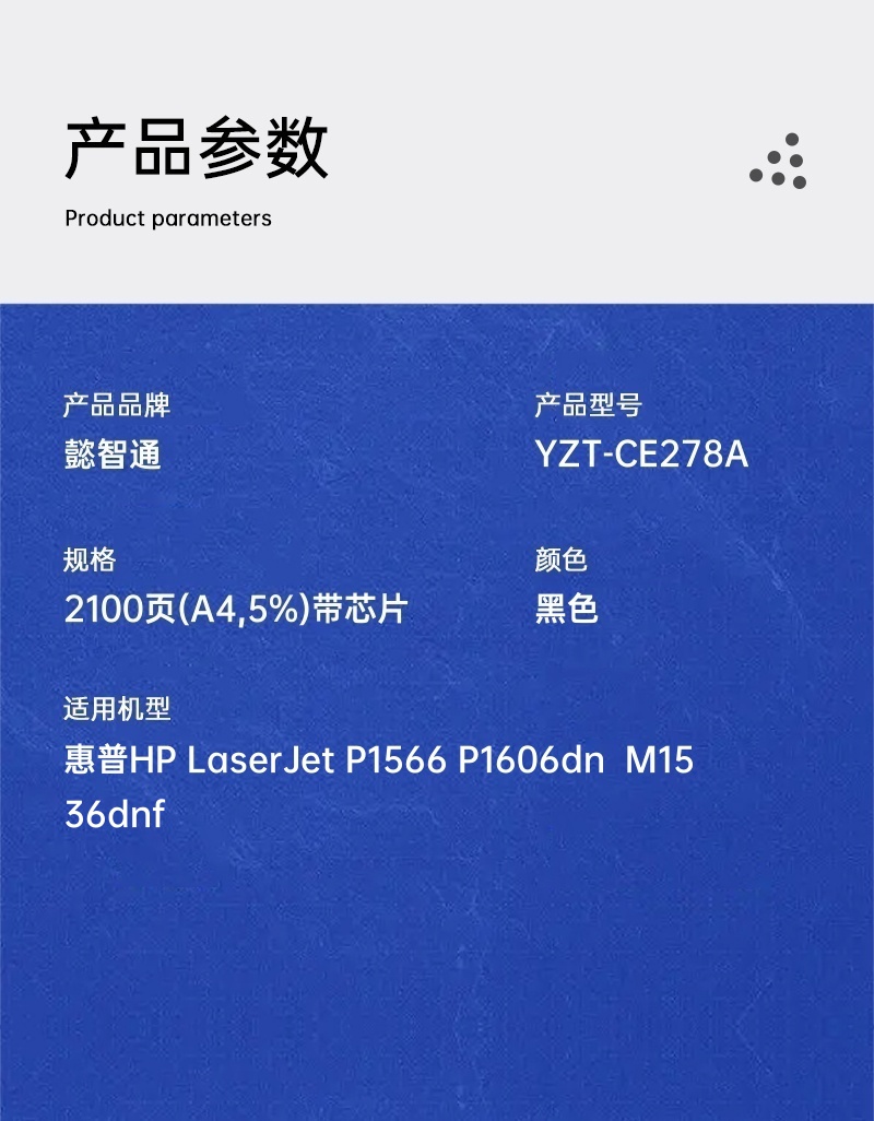 懿智通YZT CE278A黑鼓(带芯片) 适用惠普HP LaserJet P1566 P1606dn M1536dnf
