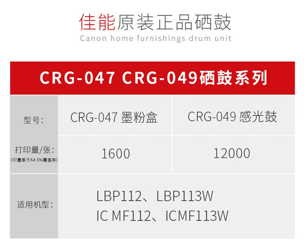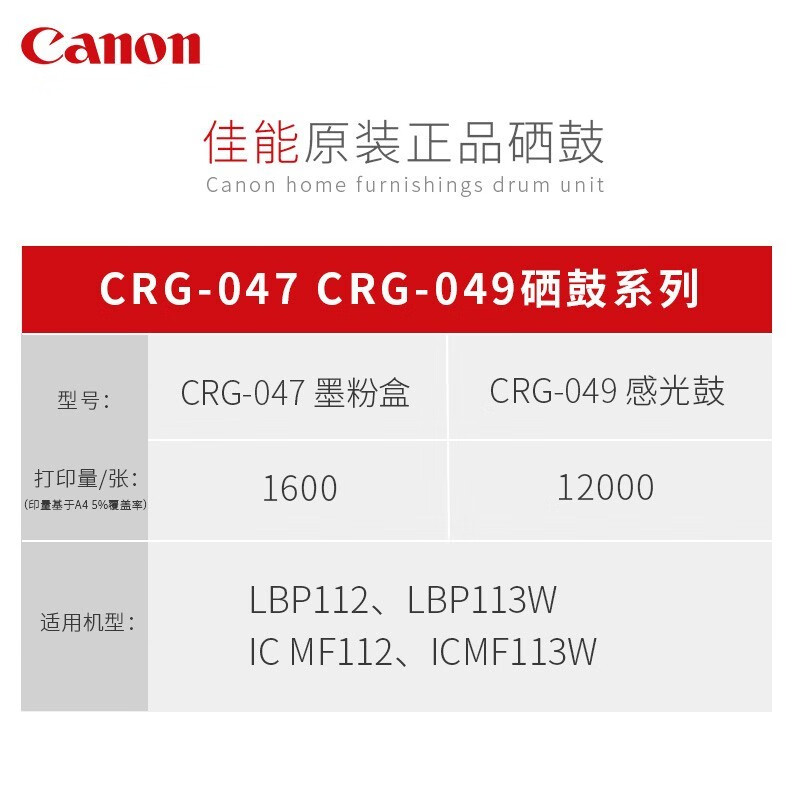 佳能 原装粉盒硒鼓047适用于mf113w/mf112/lbp112/lbp113w打印机