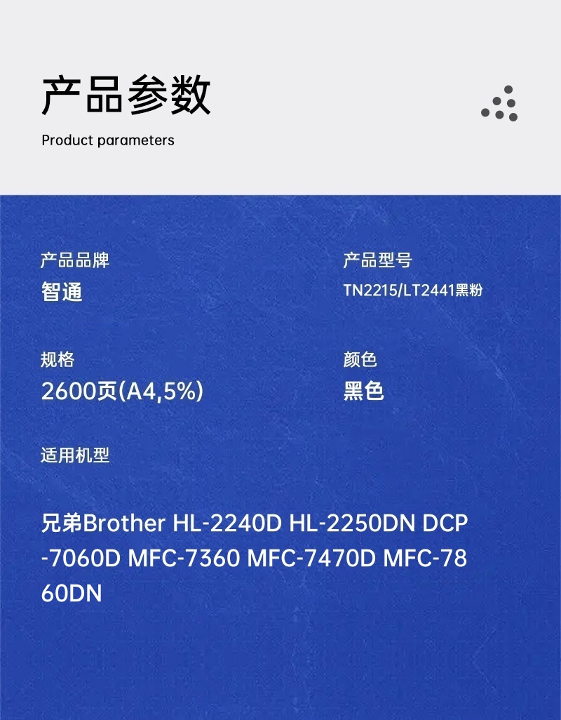 智通 TN2215/LT2441 粉盒 黑色 2600页(A4,5%)单支装(适用兄弟Brother HL-2240D HL-2250DN DCP-7060D MFC-7360)