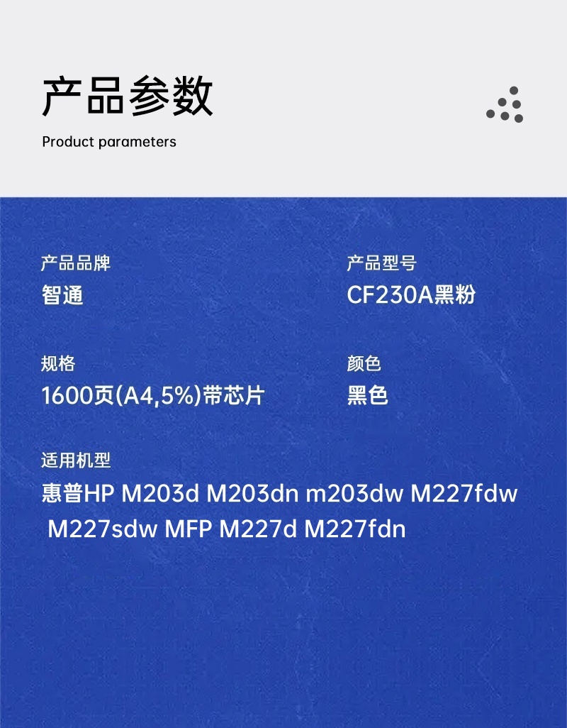 智通 CF230A 粉盒 带芯片 黑色 1600页(A4,5%)单支装(适用惠普HP M203d M203dn m203dw M227fdw M227sdw MFP M227d M227fdn)