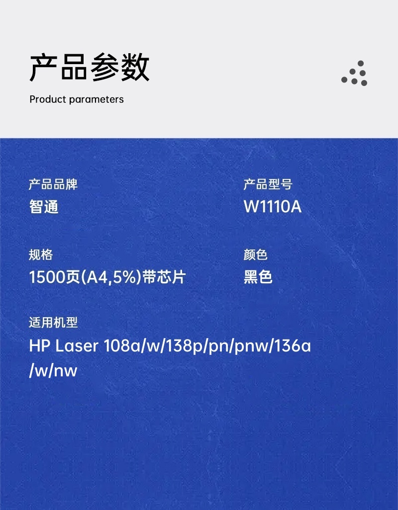 智通 W1110A 硒鼓 带芯片 黑色 1500页(A4,5%)适用HP Laser 108a w 138p pn pnw 136a w nw