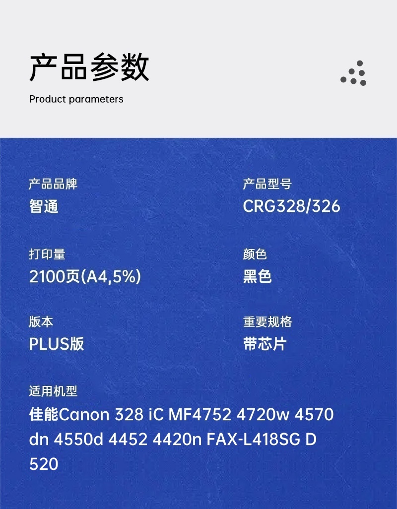 智通 CRG328/326 硒鼓 PLUS版 带芯片 黑色 2100页(A4,5%)单支装(适用佳能Canon 328 iC MF4752 4720w 4570dn 4550d 4452 4420n)