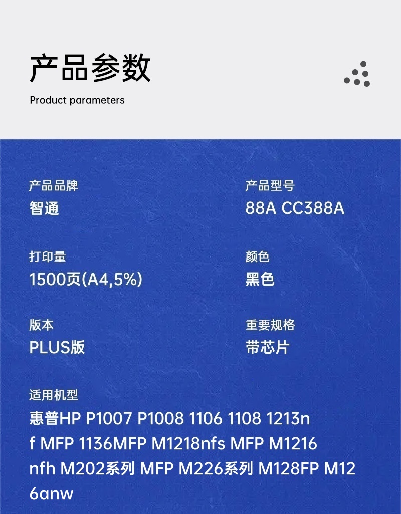 智通 88A CC388A 硒鼓 PLUS版 带芯片 黑色 1500页(A4,5%)单支装(适用惠普HP P1007 P1008 1106 1108 1213nf MFP 1136MFP M1218nfs)