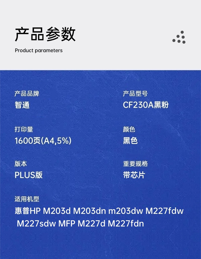 智通 CF230A 粉盒 PLUS版 带芯片 黑色 1600页(A4,5%)单支装 (适用惠普HP M203d M203dn m203dw M227fdw M227sdw MFP M227d M227fdn)