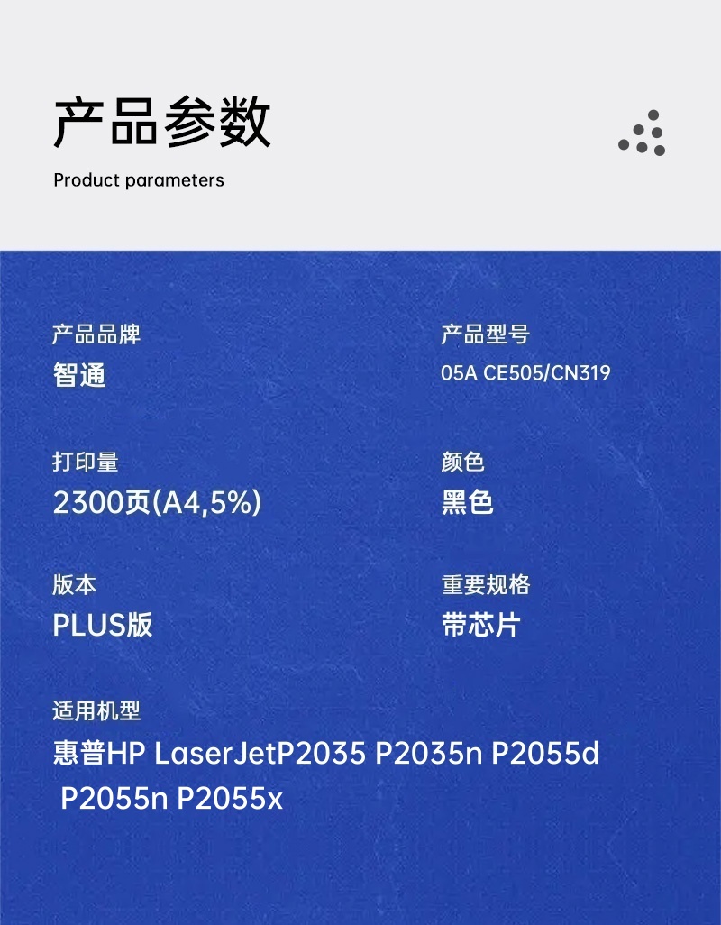 智通 05A CE505/CN319 硒鼓 PLUS版 带芯片 黑色 2300页(A4,5%)单支装(适用惠普HP LaserJetP2035 P2035n P2055d P2055n P2055x)