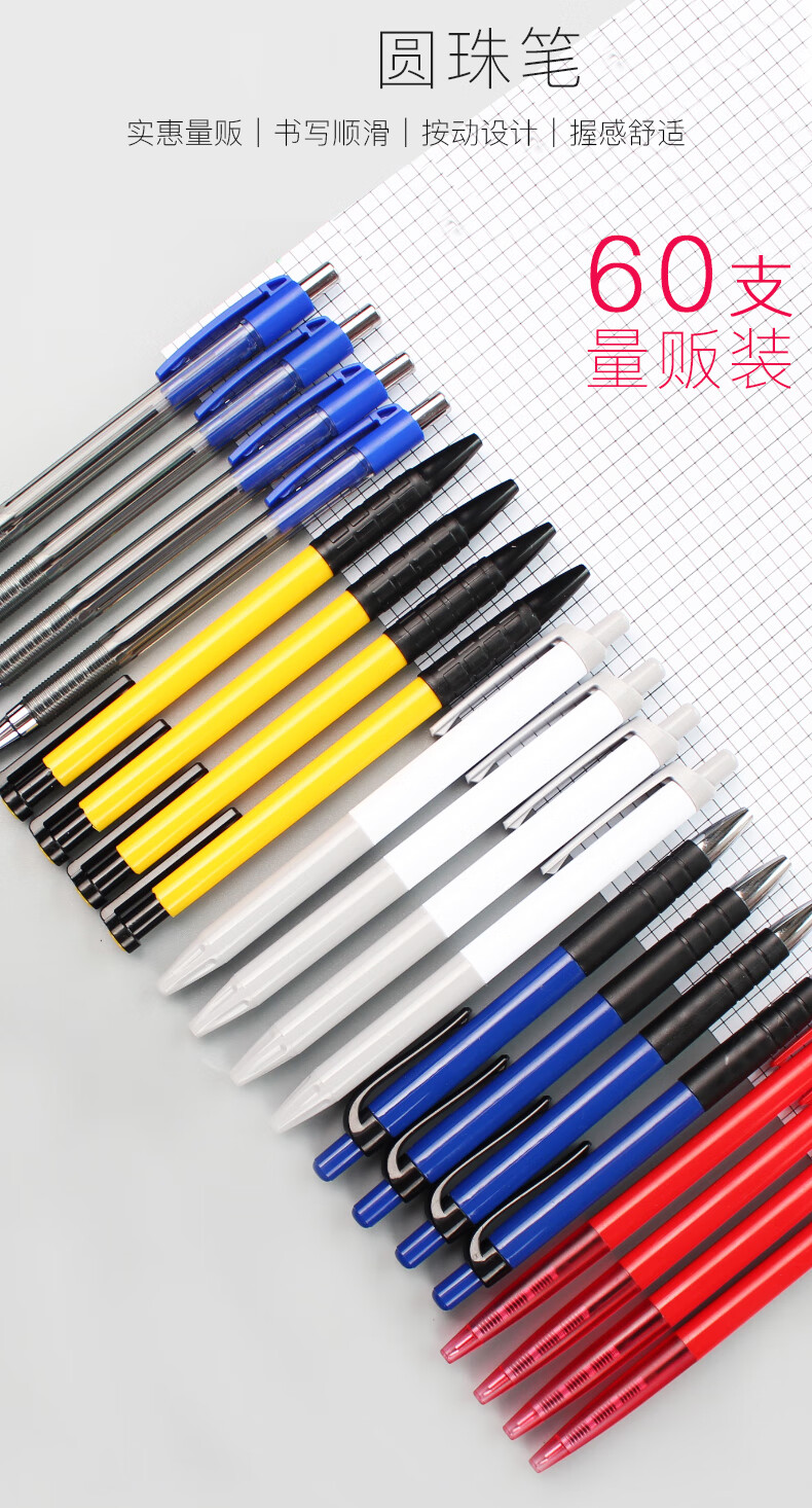 悠米(umi) 圆珠笔按动式0.7mm子弹头大容量原子速干顺滑 4色-72支