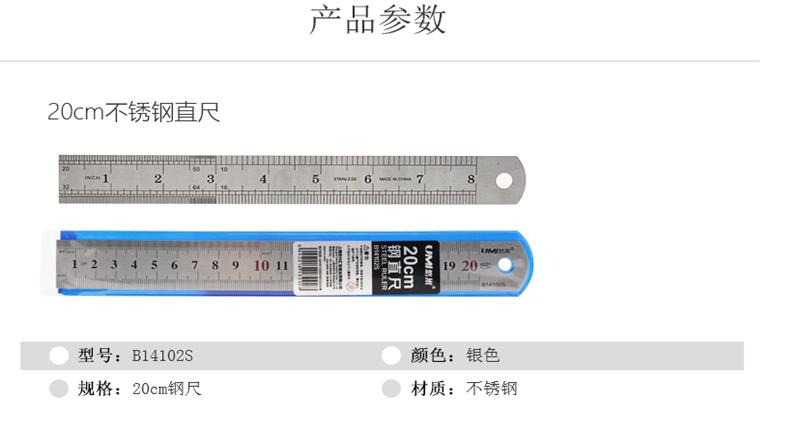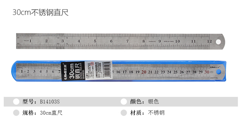 悠米 不锈钢直尺绘图工具 30CM B14103S