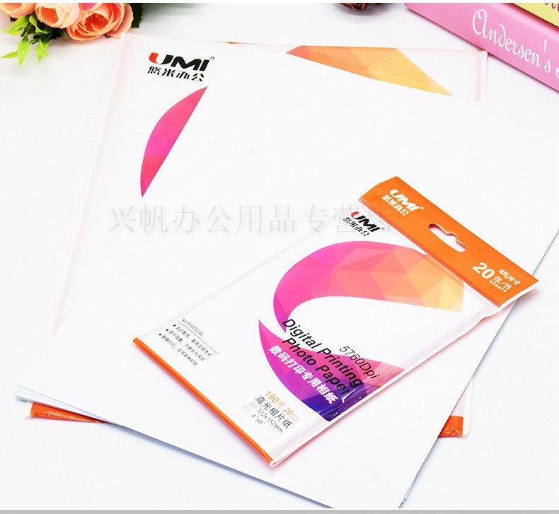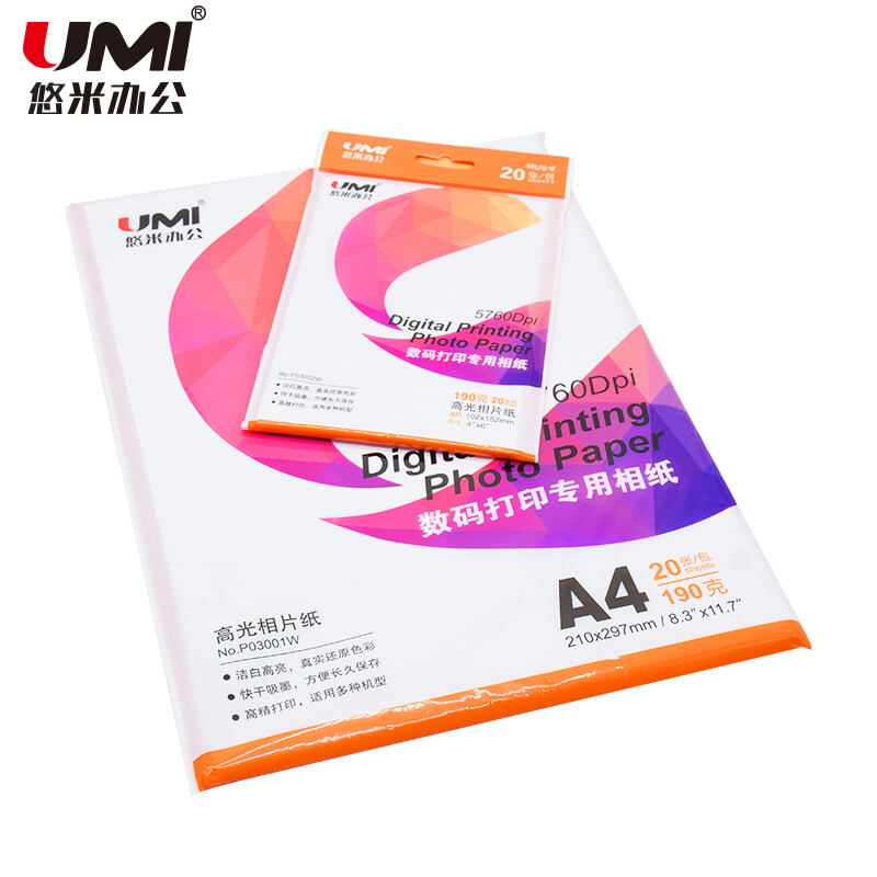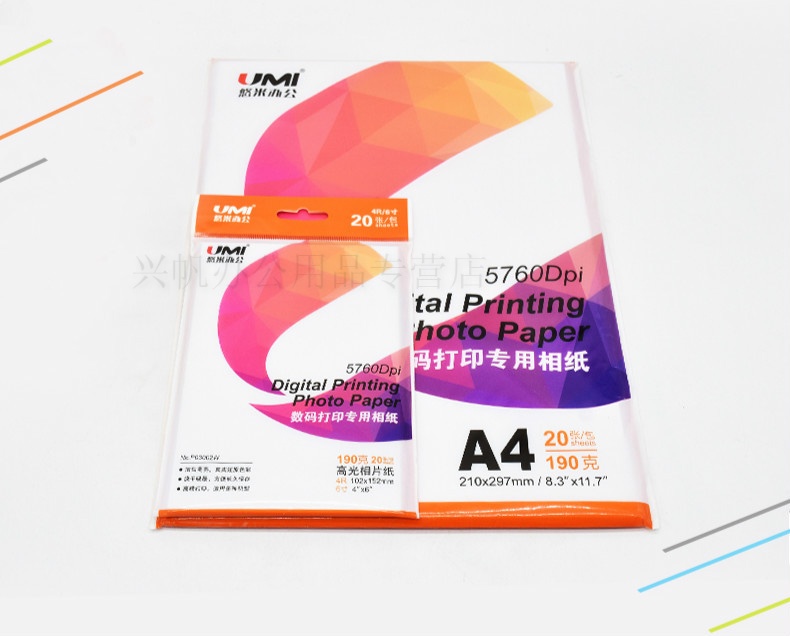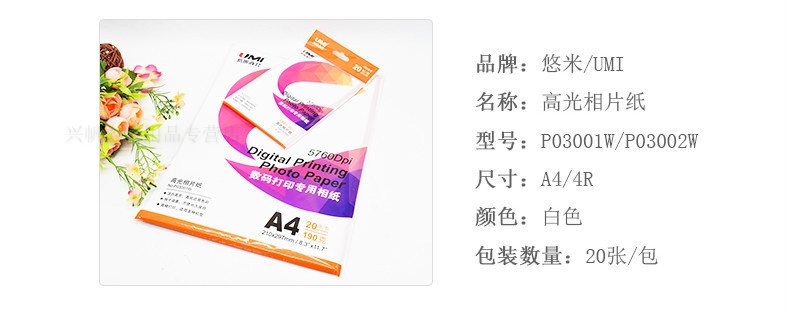 悠米(umi)P03001W A4高光照片纸防水190G 彩色喷墨相片纸