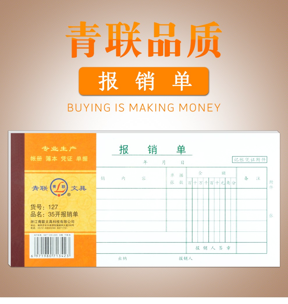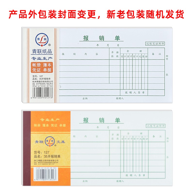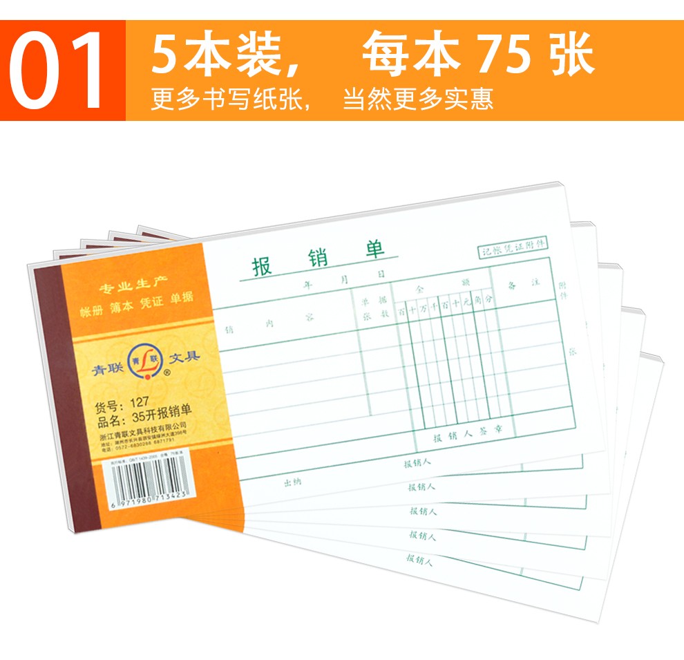 青联(qinglian) 报销单 35开 费用报销单127 财务单据 报销单 (5本起拍)