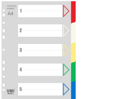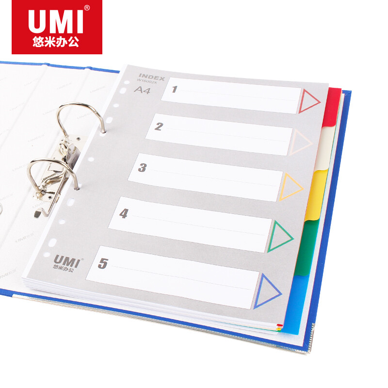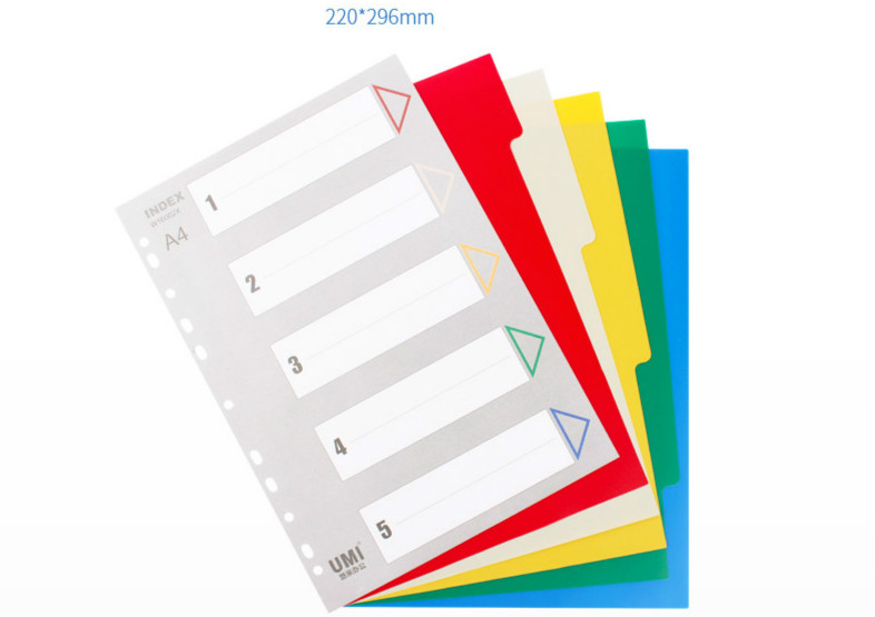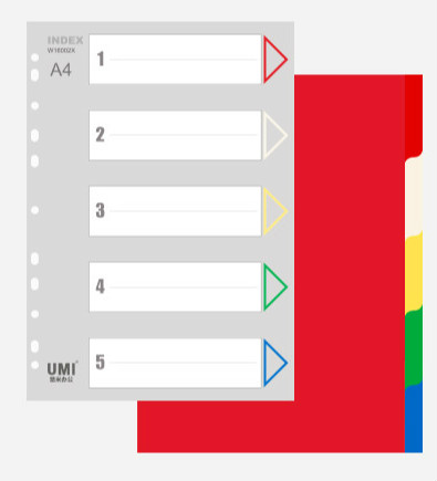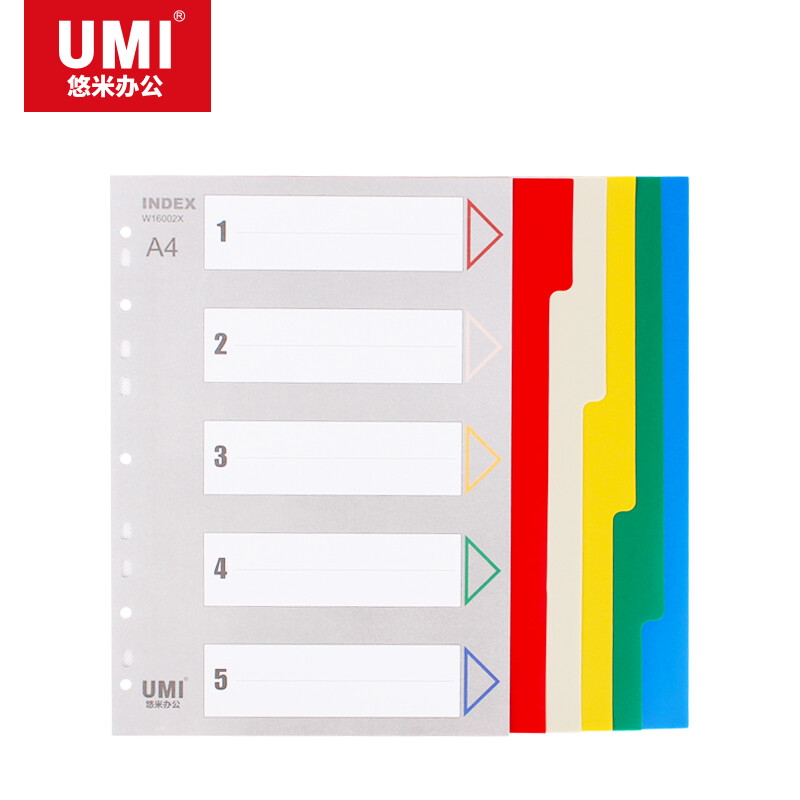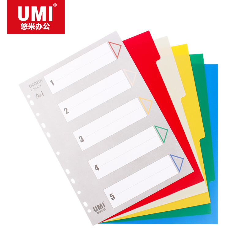 悠米(umi)W16002X彩色PP分类纸索引纸分隔纸五色