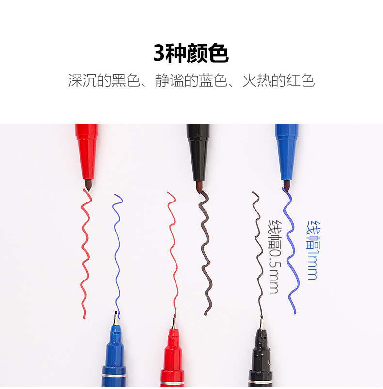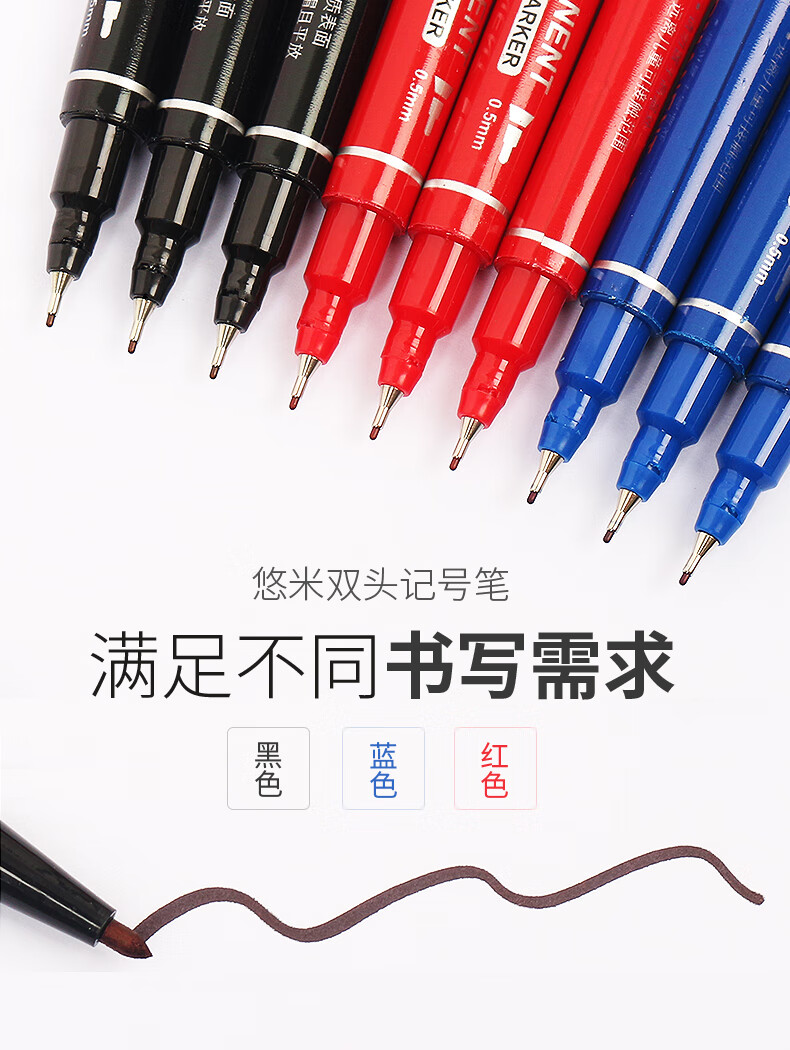 悠米(UMI) 经典小双头记号笔0.5/1.2mm S03102D 黑