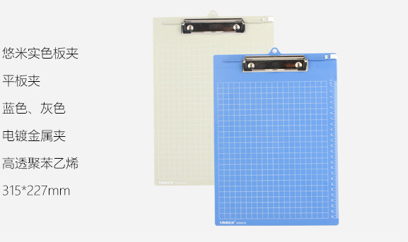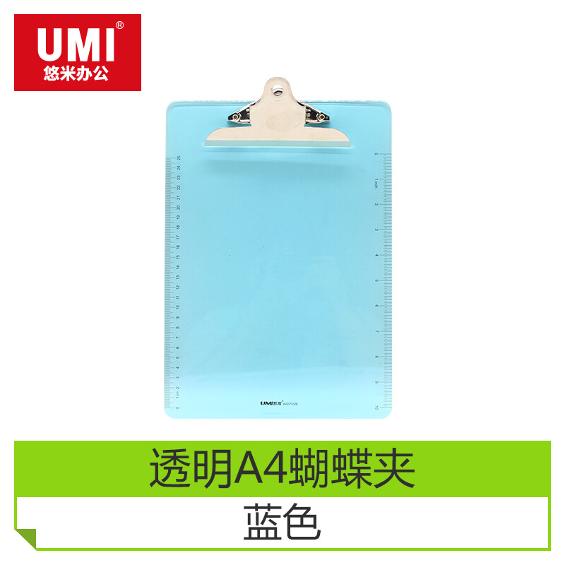 悠米(umi)书写板夹加厚文件夹 A4透明色蝴蝶夹 蓝
