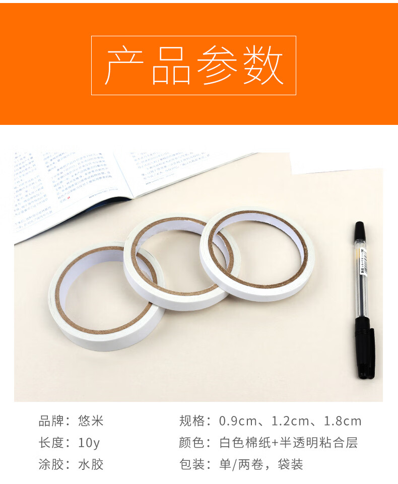悠米B05204W绵纸双面胶1.8cm*10y