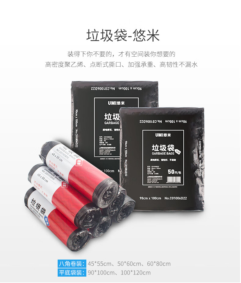 悠米C01007D22加厚平口垃圾袋(平装)100*120
