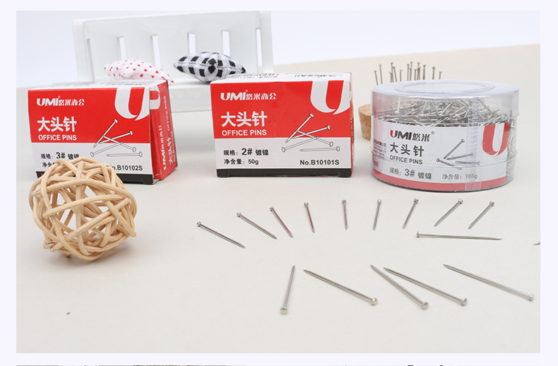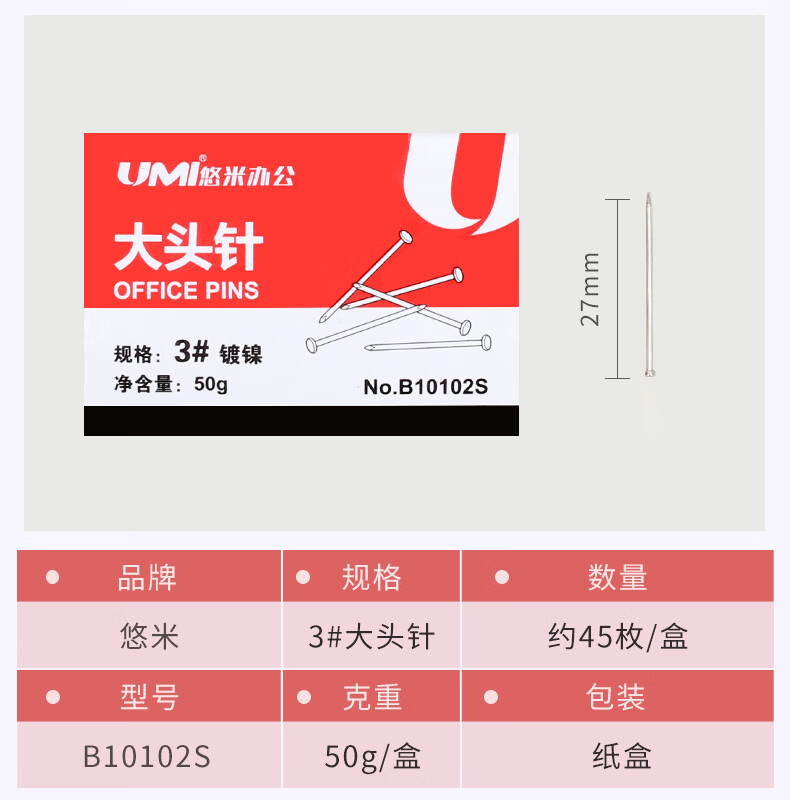 悠米 3#大头针(纸盒装 50g) B10102S 银
